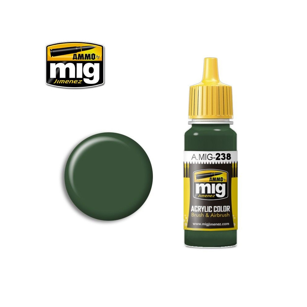 Zelenú farbu používalo USAAF počas druhej svetovej vojny v kombinácii s tmavou olivovou farbou na takých slávnych lietadlách ako B-17 a P-40. Akrylová - autentická farba s optimalizovaným zložením pre maximálny výkon buď štetcom, alebo airbrushom. 17 ml nádobka. Rozpustná vo vode, bez zápachu a netoxická. Pred každým použitím dobre pretrepte. Každá nádobka obsahuje miešadlo z nehrdzavejúcej ocele na uľahčenie miešania. Na správne riedenie odporúčame použiť akrylové riedidlo A.MIG-2000. Úplne zaschne do 24 hodín.