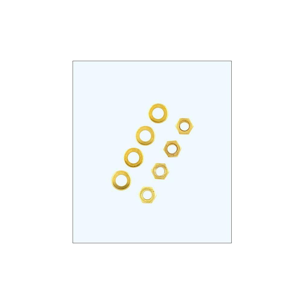 M2 sárgaréz anya (4db) sárgaréz alátétekkel (4db). Alkalmas RC modellhajókhoz.