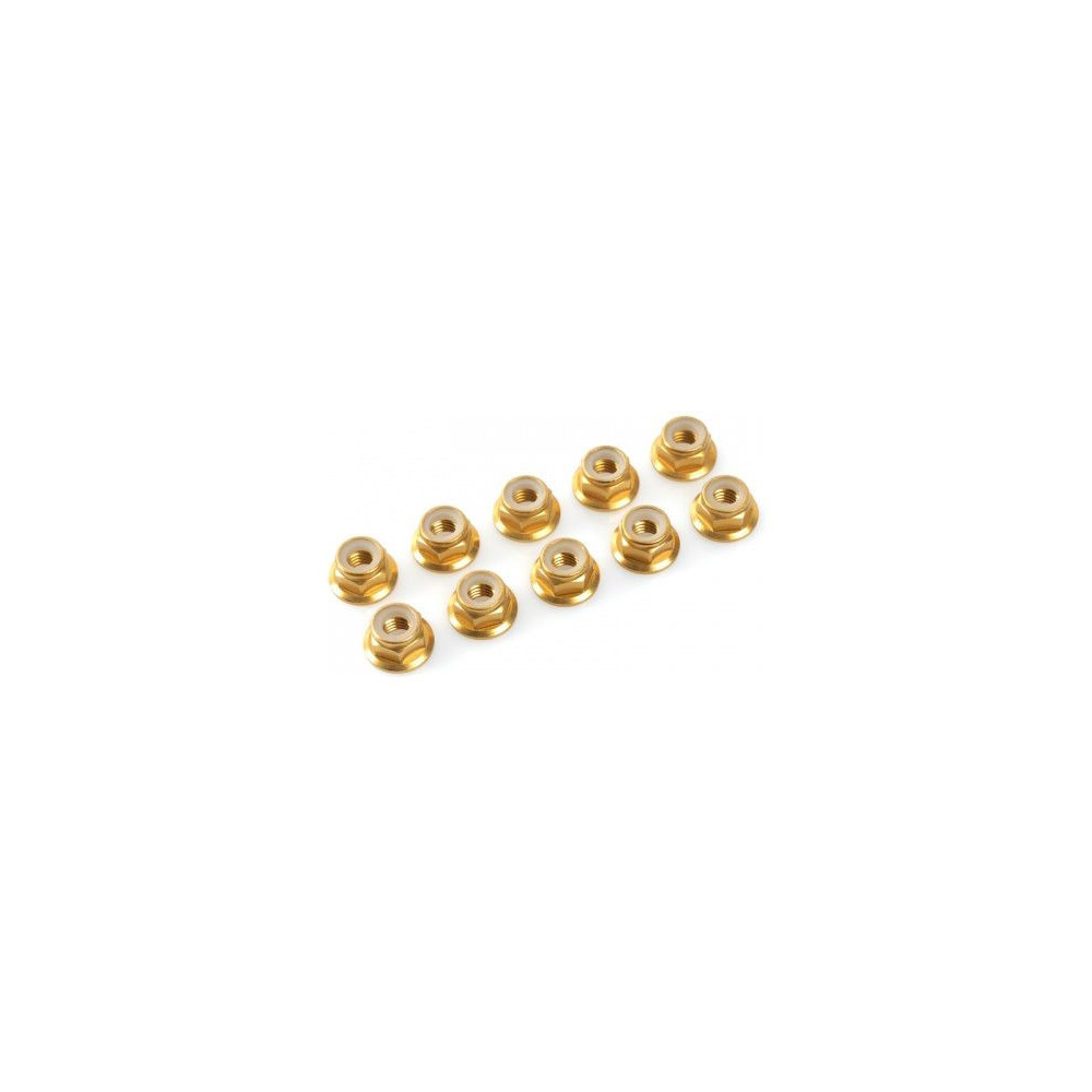 M5 önzáró alumínium anya arany eloxált karimával. A csomag 10 db-ot tartalmaz.