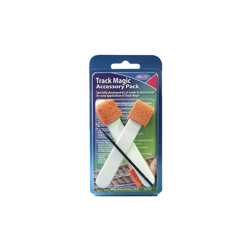 A 3 szivacsból és egy ecsetből álló készlet a Deluxe Materials Track Magic kényelmes felvitelére szolgál. A szivacsok kopásálló anyagból készültek. Javasoljuk, hogy a Track Magic-et pipetták segítségével vigye fel a szivacsokra.