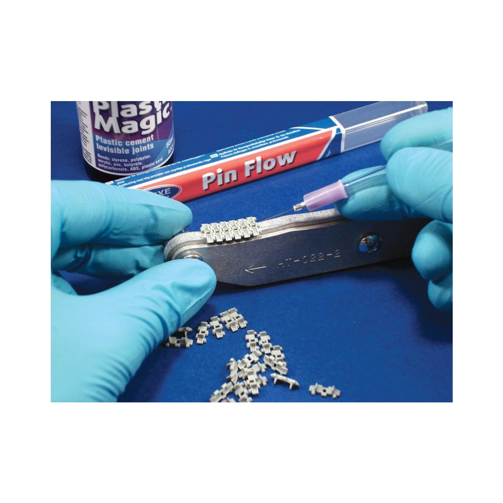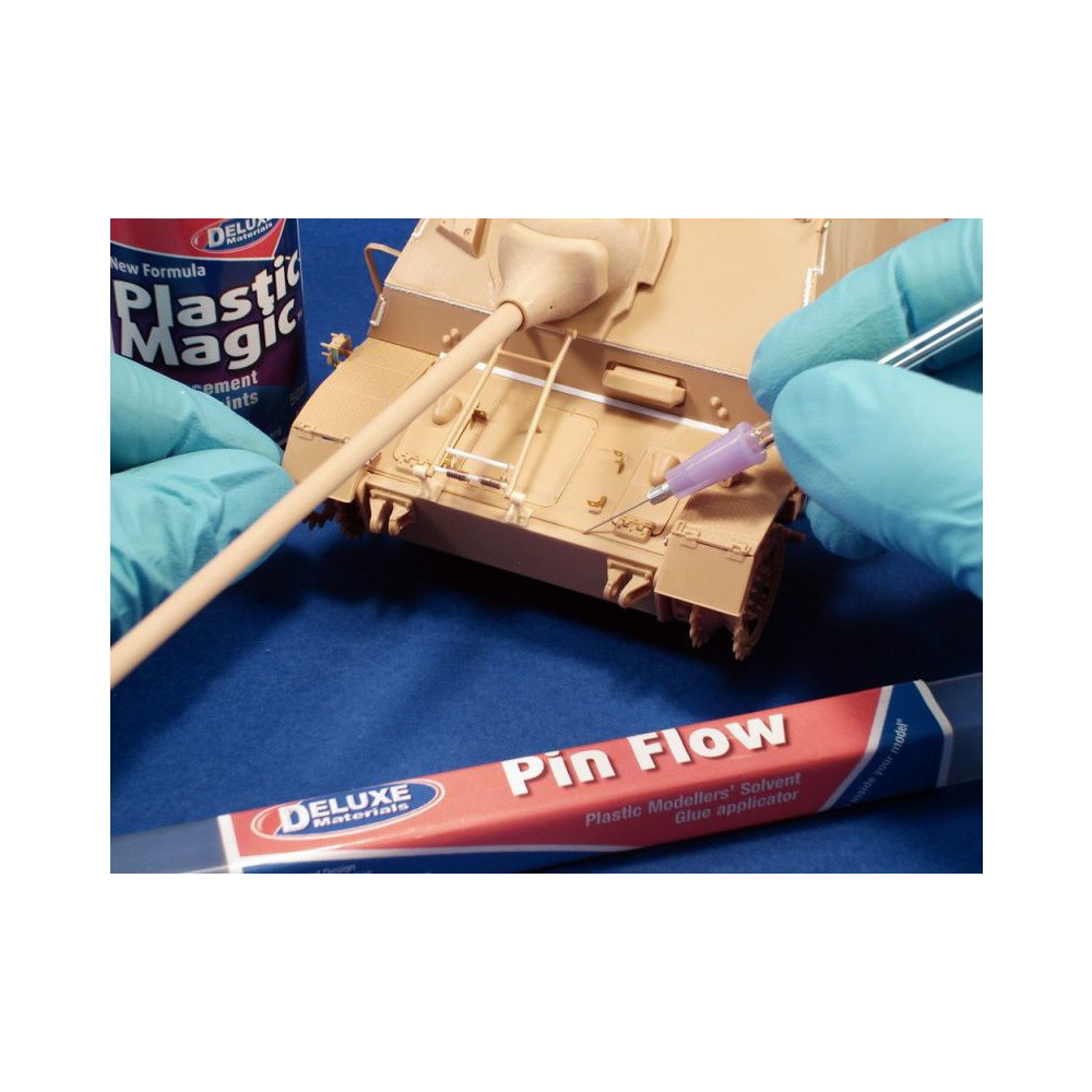 A Pin Flow tűs applikátor csővel műanyag modellek precíz ragasztásához Plastic Magic ragasztóval. Ez az applikátor lehetővé teszi, hogy pontosan a megfelelő mennyiségű ragasztót vigye fel, és pontos, láthatatlan ragasztott illesztéseket érjen el.