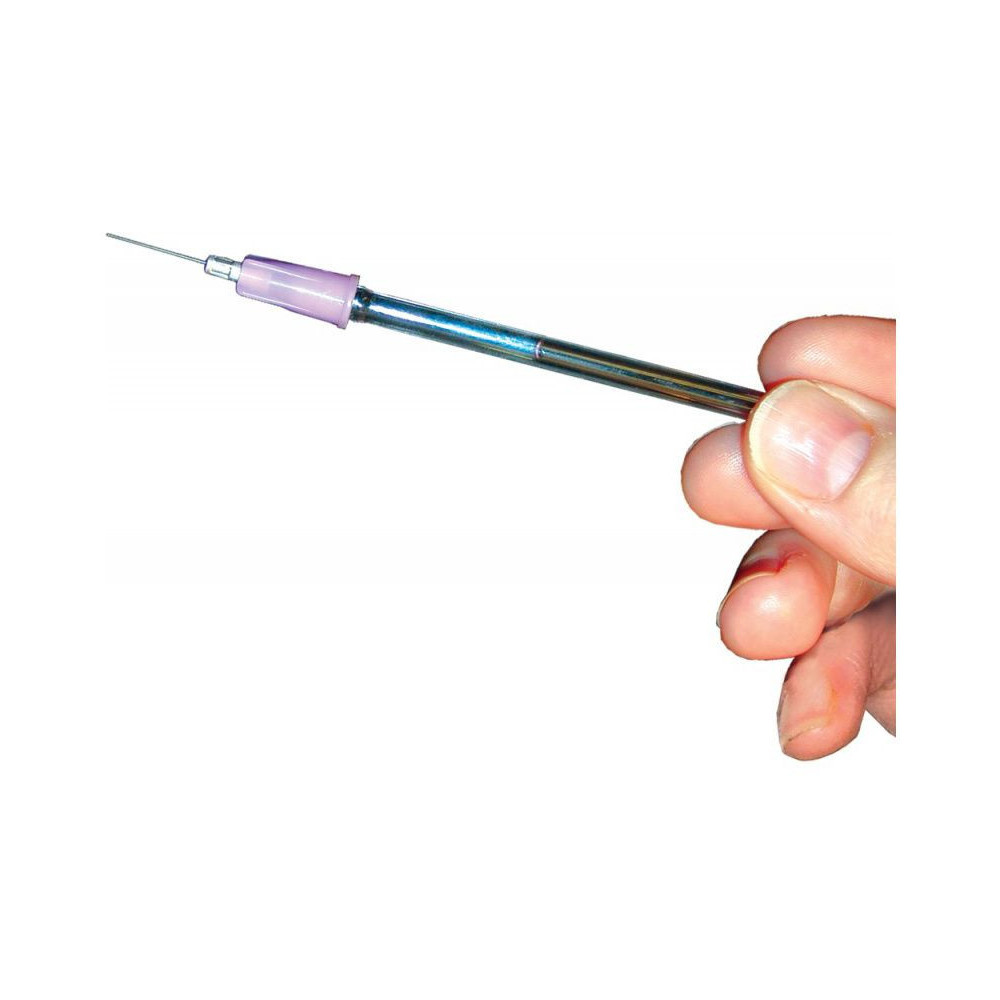 - Fordítsa el a tubust 180°-kal (tű lefelé). A ragasztó lassan a tű felé fog folyni.