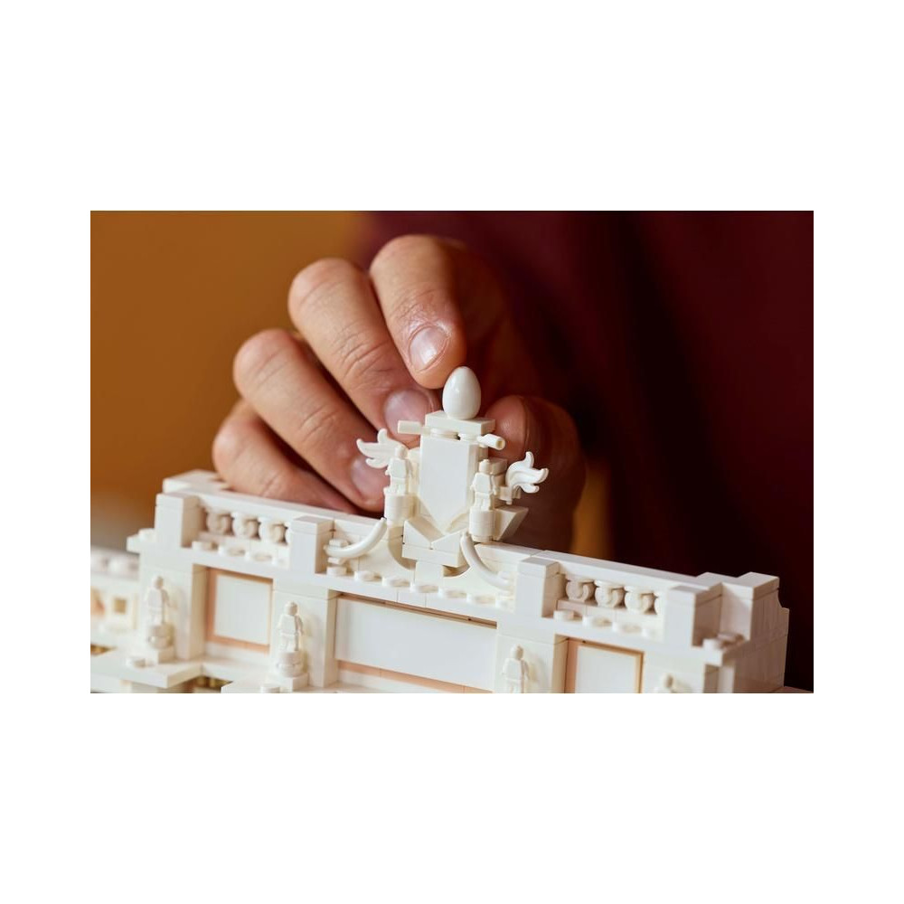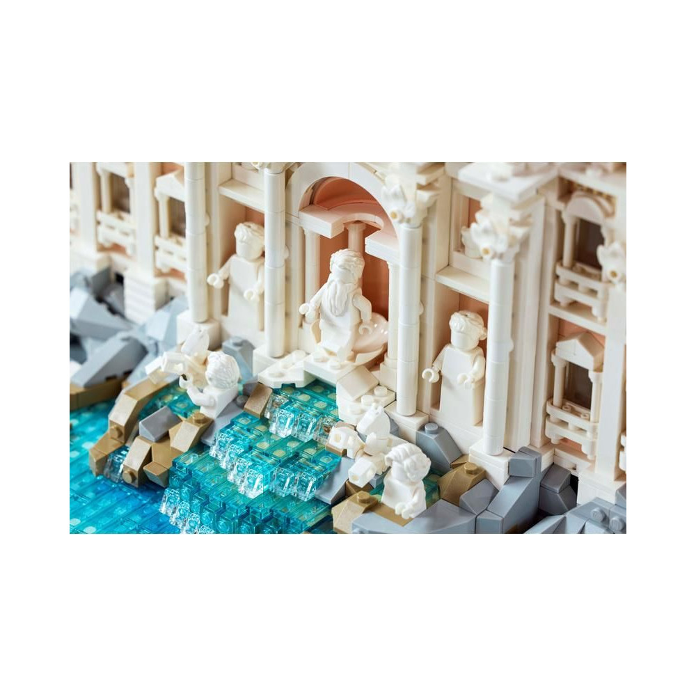 Próbálj ki haladó építési technikákat, és építs hiteles szökőkút részleteket, mint például a Palazzo Poli homlokzatát és a híres Óceán szobrokat egy kagyló alakú szekéren, valamint a Bőség és Egészség minifigura formájában. Ezenkívül a Trevi-kút látványos kiállítási makettjét tengeri csikókkal és tritonokkal, az oldalán egy kis „Szerelmesek szökőkútjával” és egy névvel ellátott táblával is ellátták.