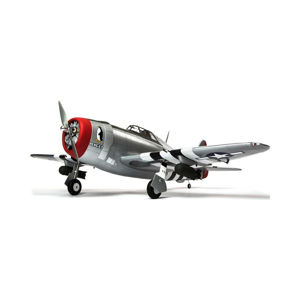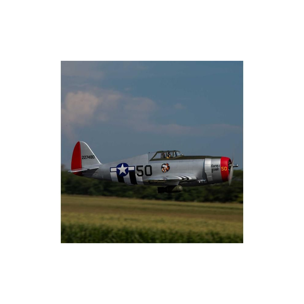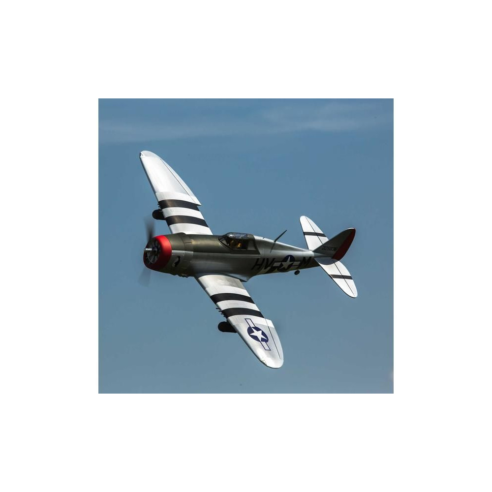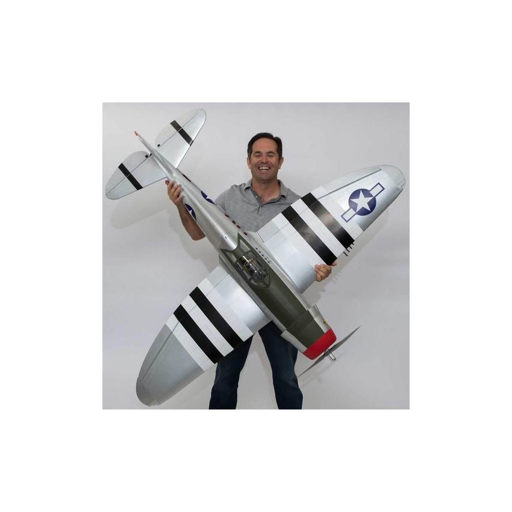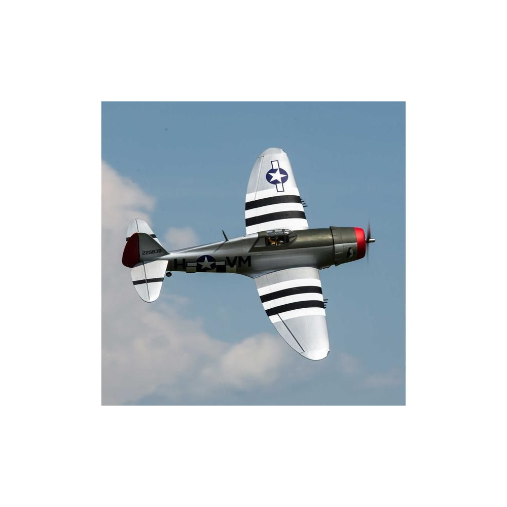 Az amerikai legenda, az 1,7 méteres szárnyfesztávolságú P-47D Thunderbolt vadászgép teljes egészében fából készült konstrukcióval, felhajtóerő-szabályozó fékszárnyakkal és tömör futóművel rendelkezik, amely egy behúzható elektromos E-flite-ra cserélhető. Pilótafigurával, irányítható homlokkerékkel és számos makett elemmel ellátott kabin. Az ARF verzióhoz saját meghajtó és elektronika szükséges.