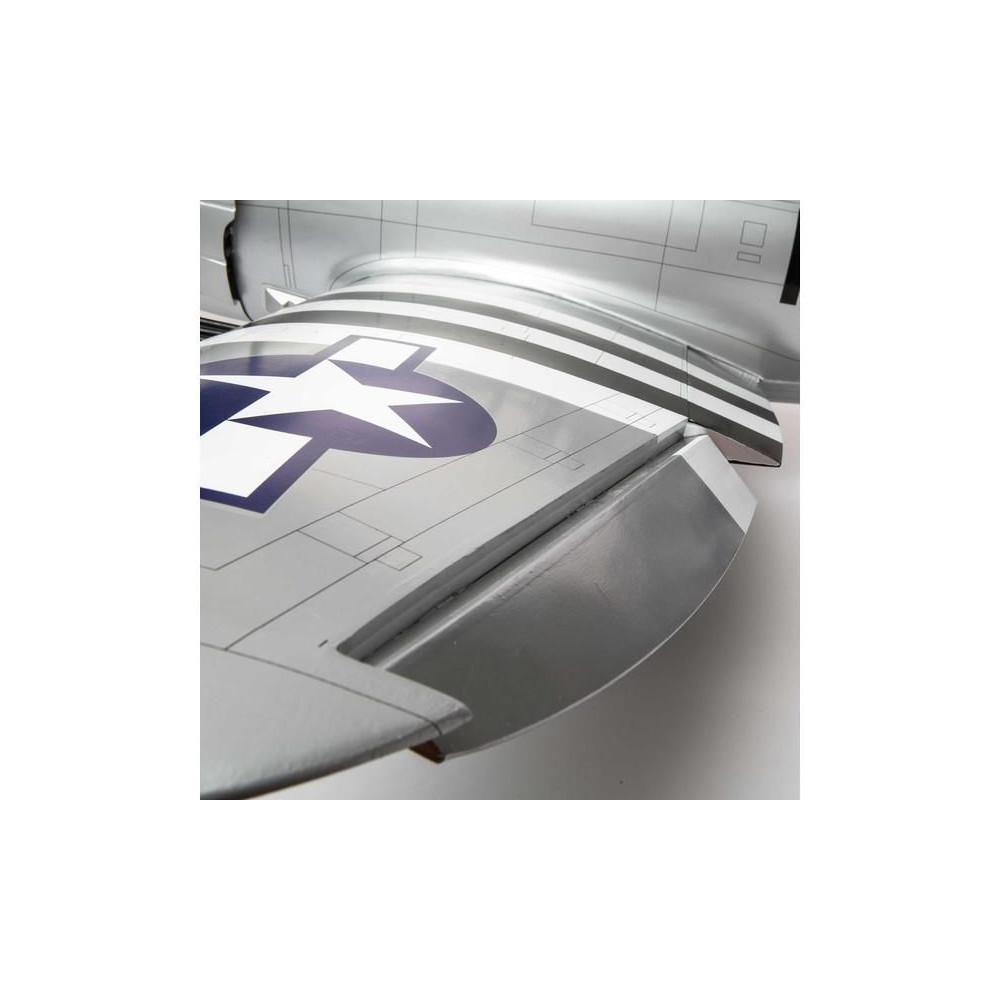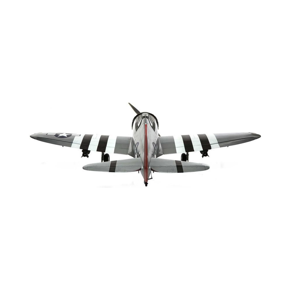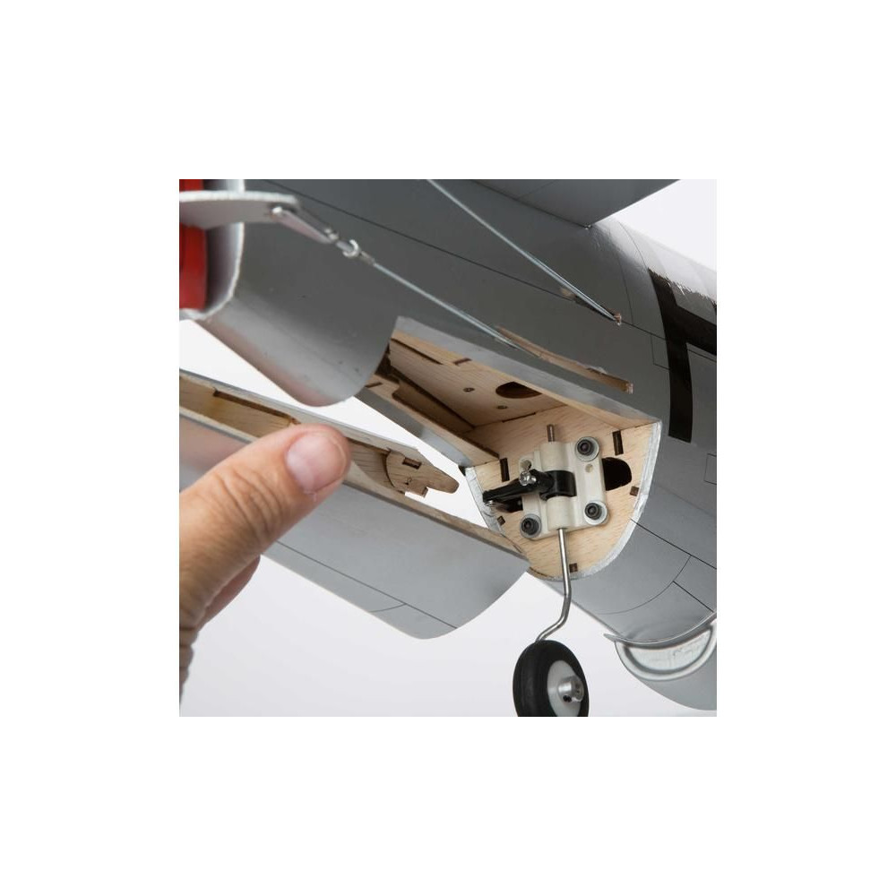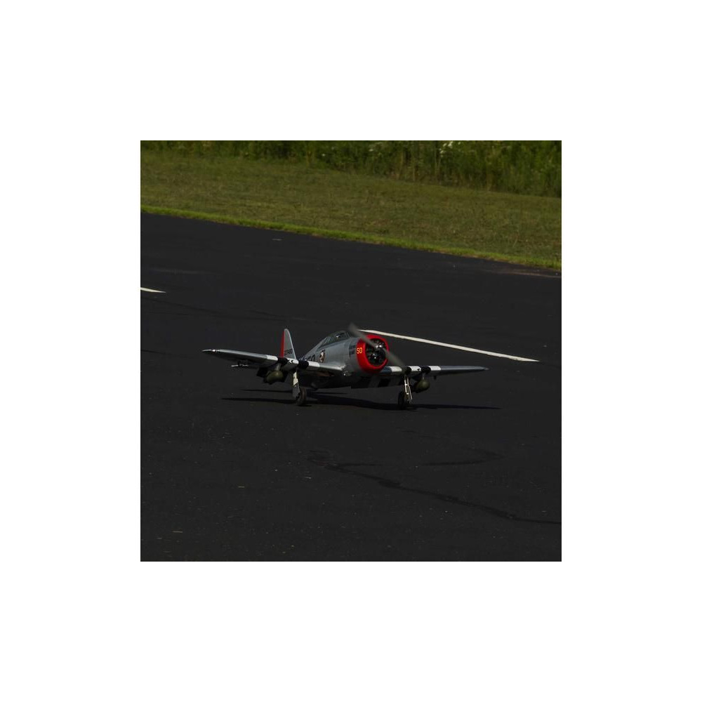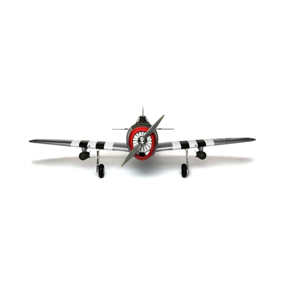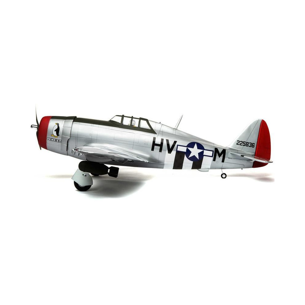 Az amerikai legenda, az 1,7 méteres szárnyfesztávolságú P-47D Thunderbolt vadászgép teljes egészében fából készült konstrukcióval, felhajtóerő-szabályozó fékszárnyakkal és tömör futóművel rendelkezik, amely egy behúzható elektromos E-flite-ra cserélhető. Pilótafigurával, irányítható homlokkerékkel és számos makett elemmel ellátott kabin. Az ARF verzióhoz saját meghajtó és elektronika szükséges.