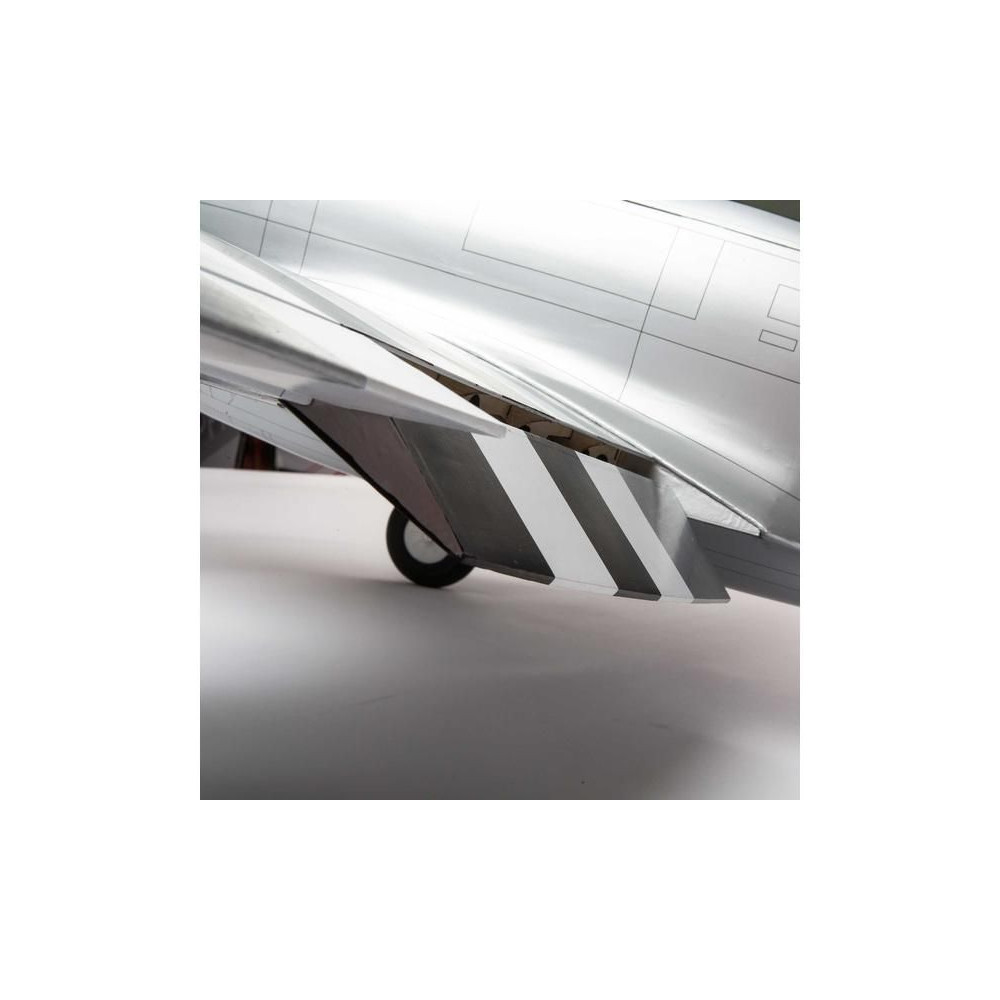 Amerikai legenda, a P-47D Thunderbolt nehéz vadászrepülőgép modellterve. Az 1,7 m fesztávolságú RC modell teljes egészében fából készült, előre elkészített álcázással. 20 köbcentis benzinmotort vagy villanymotort ajánlunk, a modell emelőszárnyakkal és masszív alvázzal rendelkezik, amely egy behúzható elektromos E-flite-ra cserélhető. Van egy kabinja, amely pilótafigurával, vezérelt homlokkerékkel és számos makett elemmel van felszerelve. A szárny kétrészes szerkezete megkönnyíti a szállítást és a tárolást. A gazdag felületkezelés szatén kidolgozással, finom színátmenetekkel és panelvonal-kidolgozással valósághű megjelenést kölcsönöz, amely méltó egy múzeumi kiállításhoz. A csomag különböző matricák változatait tartalmazza a személyes testreszabás lehetőségének érdekében.