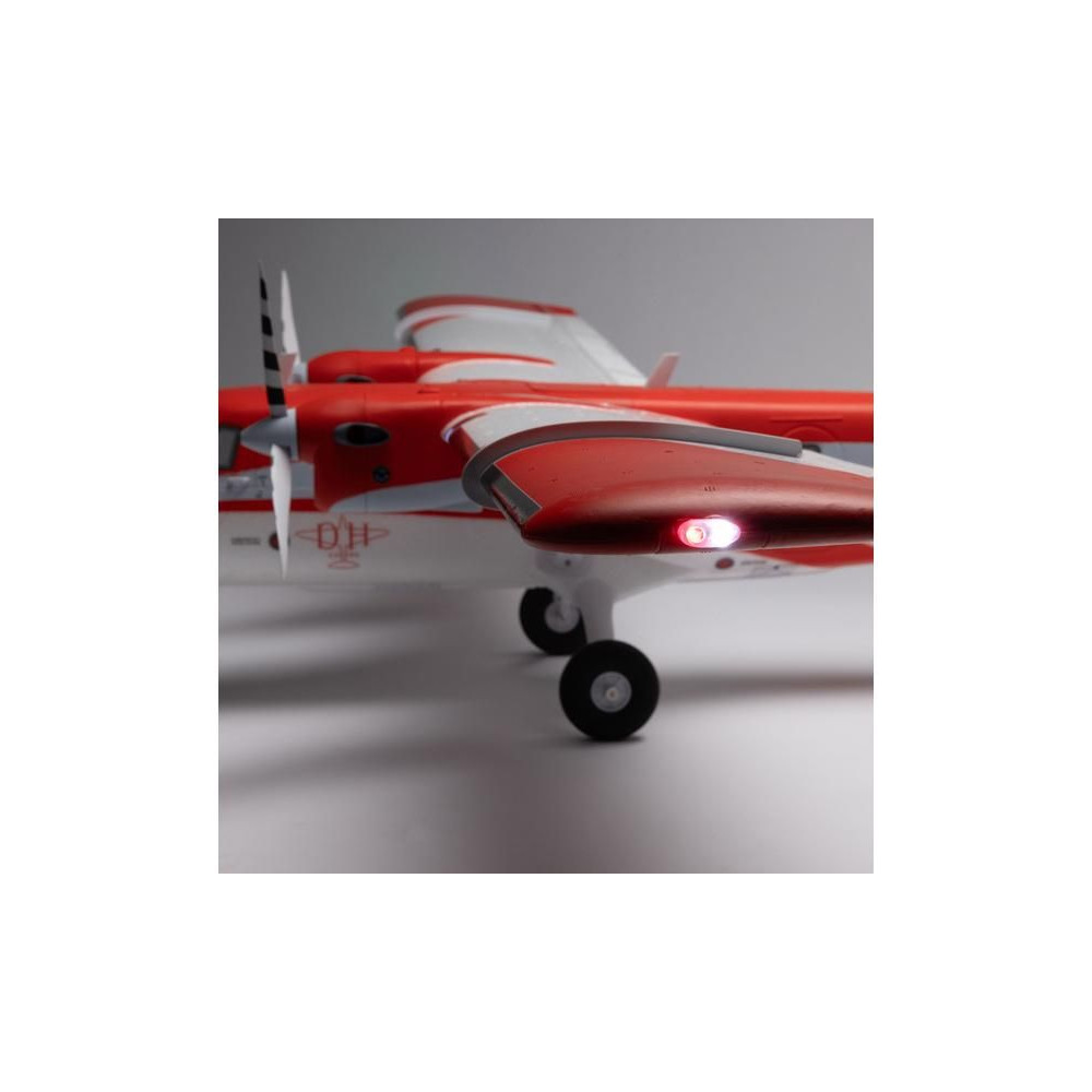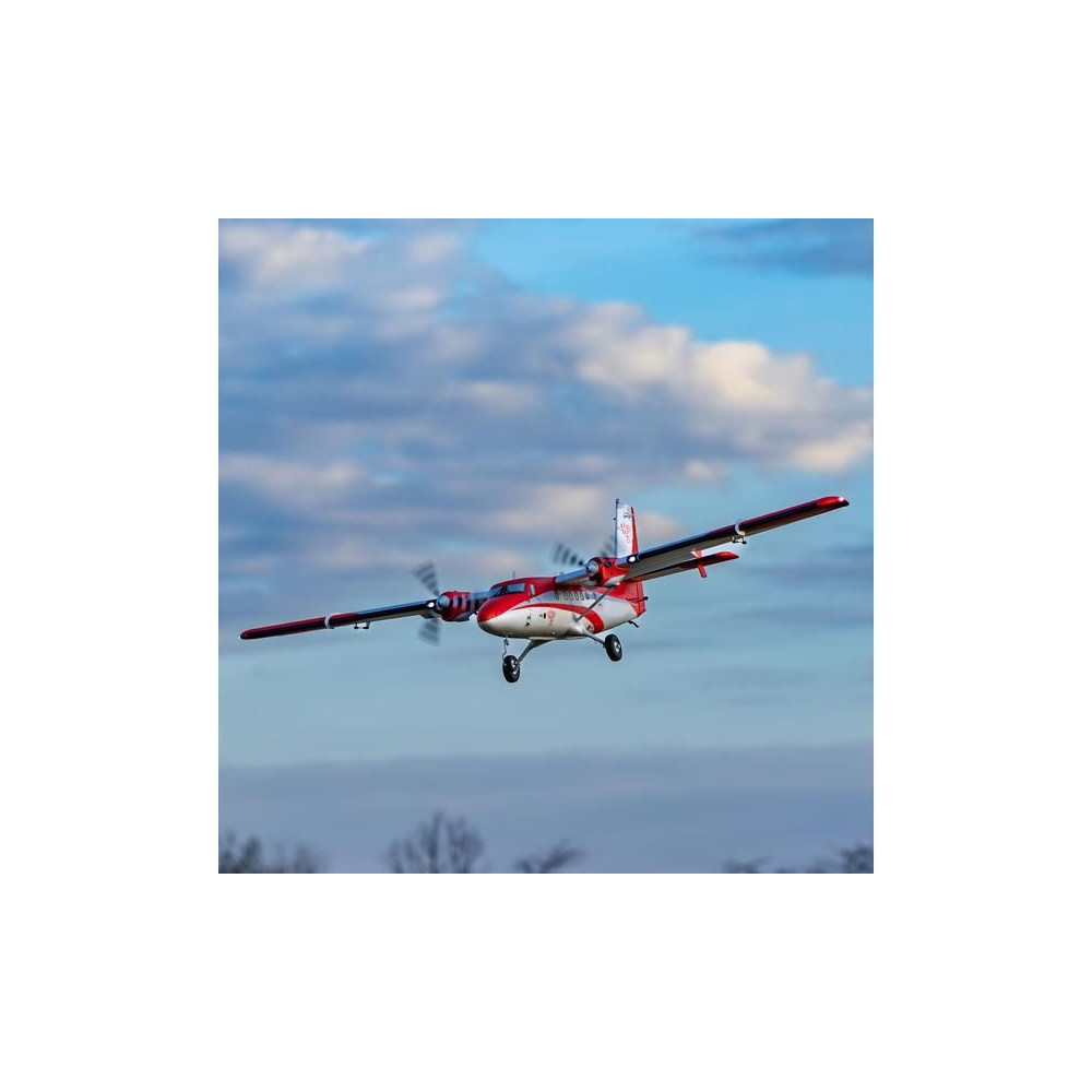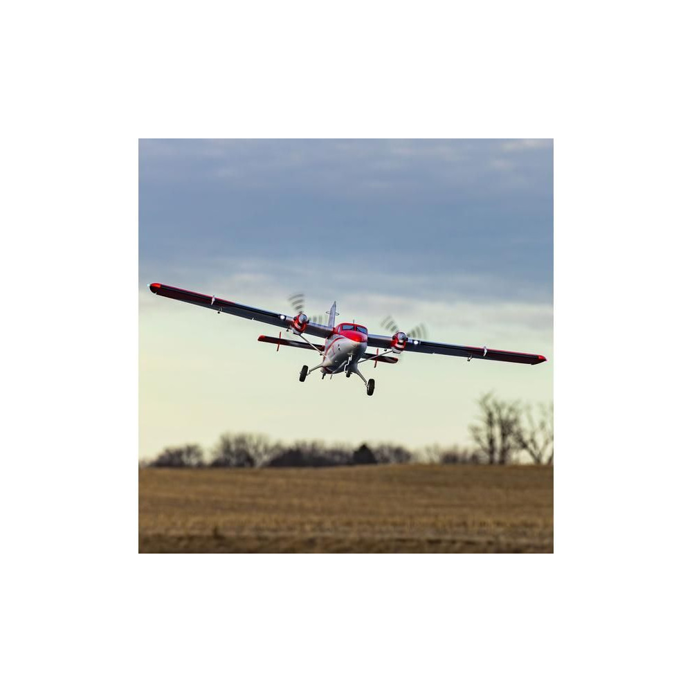 Az E-flite DHC-6 Twin Otter 1,4 m-es modelljének kétmotoros távirányítású modellje, egy kereskedelmi repülőgép mintájára, rövid felszállás és leszállás (STOL) lehetőséggel. Ellenkező irányban forgó légcsavarokkal, váltakozó áramú motorokkal és 3-4S LiPo tápegység opcióval van felszerelve. Az izgalmas, beépített LED-világítással ellátott makett megjelenés mellett a modell lenyűgöző repülési teljesítményt nyújt a magas szárnyú repülőgépek kiszámítható viselkedésével kombinálva. A Twin Otter felszálláshoz és leszálláshoz fékszárnyakkal van felszerelve. PNP verzió - RC készletet (vevő és adó) kell hozzáadni.