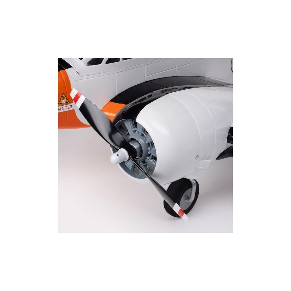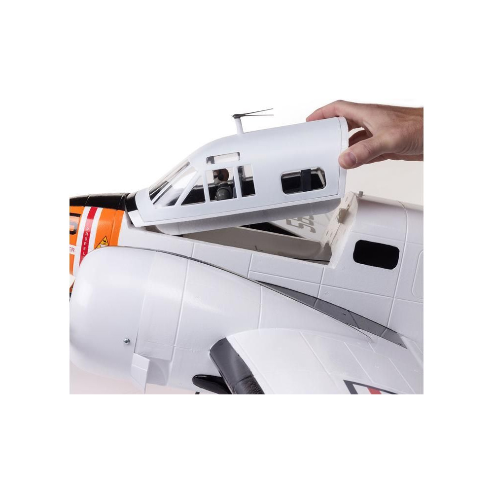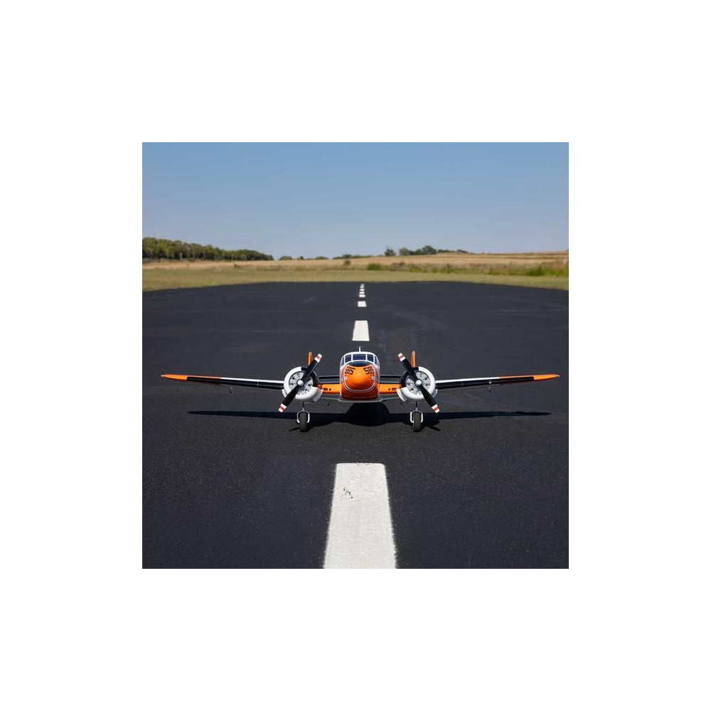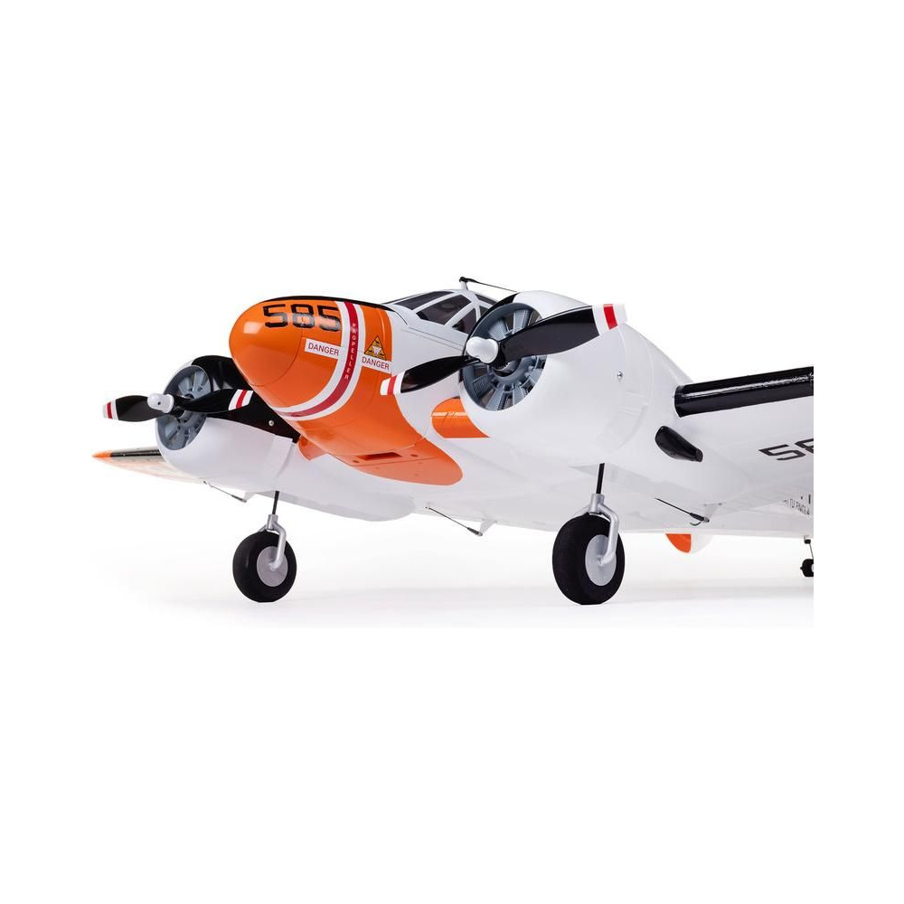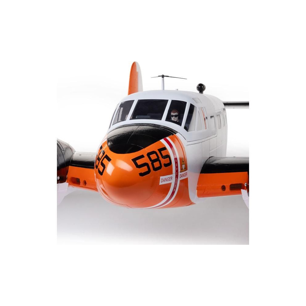 A híres amerikai Beechcraft D18 repülőgép részletesen kidolgozott félmodellje az amerikai haditengerészet színeiben (RC-45J), egy teljesen működőképes E-flite távirányítású modellként, 1,5 m fesztávolsággal. Ez az egyik legfelhasználóbarátabb és legkönnyebben reptethető távirányítású modellje ennek a repülési ikonnak, amely rengeteg funkcióval rendelkezik. Két ellentétesen forgó motor, valamint egy Spektrum vezérlő, amely 3S - 4S LiPo 3200–5000 mAh tápegységgel is választható, bőséges teljesítményt biztosít mind a normál, mind a sportrepüléshez. A dupla kormánykerék szintén hozzájárul a kiváló irányíthatósághoz. A teljes felszerelést funkcionális felszállási és leszállási fékszárnyak, valamint elektromosan behúzható, tartós fém alkatrészekből készült futómű segíti. A LED-világítás a jó tájékozódás és a csodálatos megjelenés érdekében beépített.