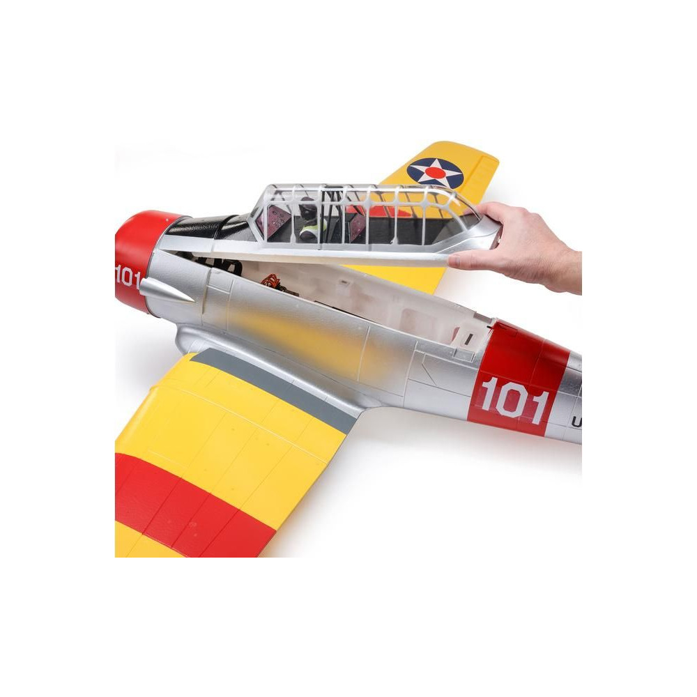 Az egyik leghíresebb kiképző repülőgép - az E-flite SNJ-5/AT-6 Texan - távirányítású modellje 1,5 ms fesztávolsággal , elektromos behúzható futóművel és fékszárnyakkal. A modell meghajtását teljesen modernizálták, és most már AC motort és szabályozót tartalmaz, valamint 3-4S LiPo tápegység opcióval a nagyobb teljesítmény és a jobb akrobatikus képességek érdekében. Beépített Spektrum elektronika - Smart 70A szabályozó. A modellben található Spektrum intelligens elektronika számos olyan előnyt kínál, amelyet máshol nem talál. Kompatibilis adóval és vevővel (külön megvásárolható) számos telemetriai adat áll rendelkezésre - akkumulátorfeszültség, áramfogyasztás, hőmérséklet és egyéb adatok. Ez a PNP verzió úgy lett kialakítva, hogy kiegészítse a saját RC készletét (vevő és adó), akkumulátorát és töltőjét.