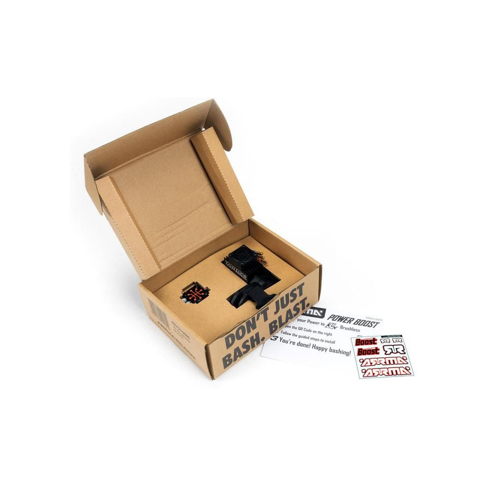 Az ARRMA 3S Brushless BOOST Box egy QR-kódot is tartalmaz egy online telepítési videóhoz, amely lépésről lépésre bemutatja a kefe nélküli meghajtó beszerelését. Az opcionális ARRMA BOOST alkatrészekkel egy sokkal erősebb gépre fejlesztheti autóját.