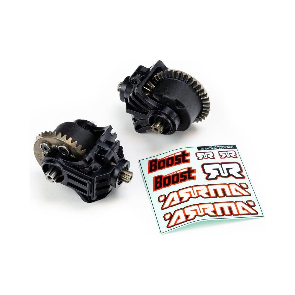Szerelje be az extra tartós Arrma BOOST Box fém differenciálművet a 4X2 BOOST, MEGA vagy 3S basher RC autójába. Tartalmazza a teljesen fém első és hátsó differenciálműveket, teljesen fém ferde fogaskerekekkel, bemeneti fogaskerékkel és belső fogaskerékkel.