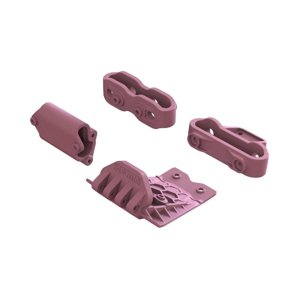 Pótalkatrész RC modellhez Arrma MT Gorgon: alsó síléc, lökhárító tartó, rózsaszín.