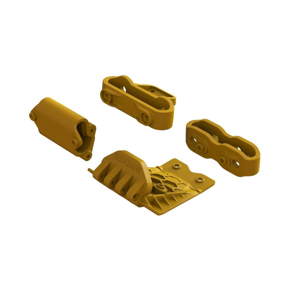 Pótalkatrész RC modellhez Arrma MT Gorgon: alsó síléc, lökhárító tartó, narancssárga.