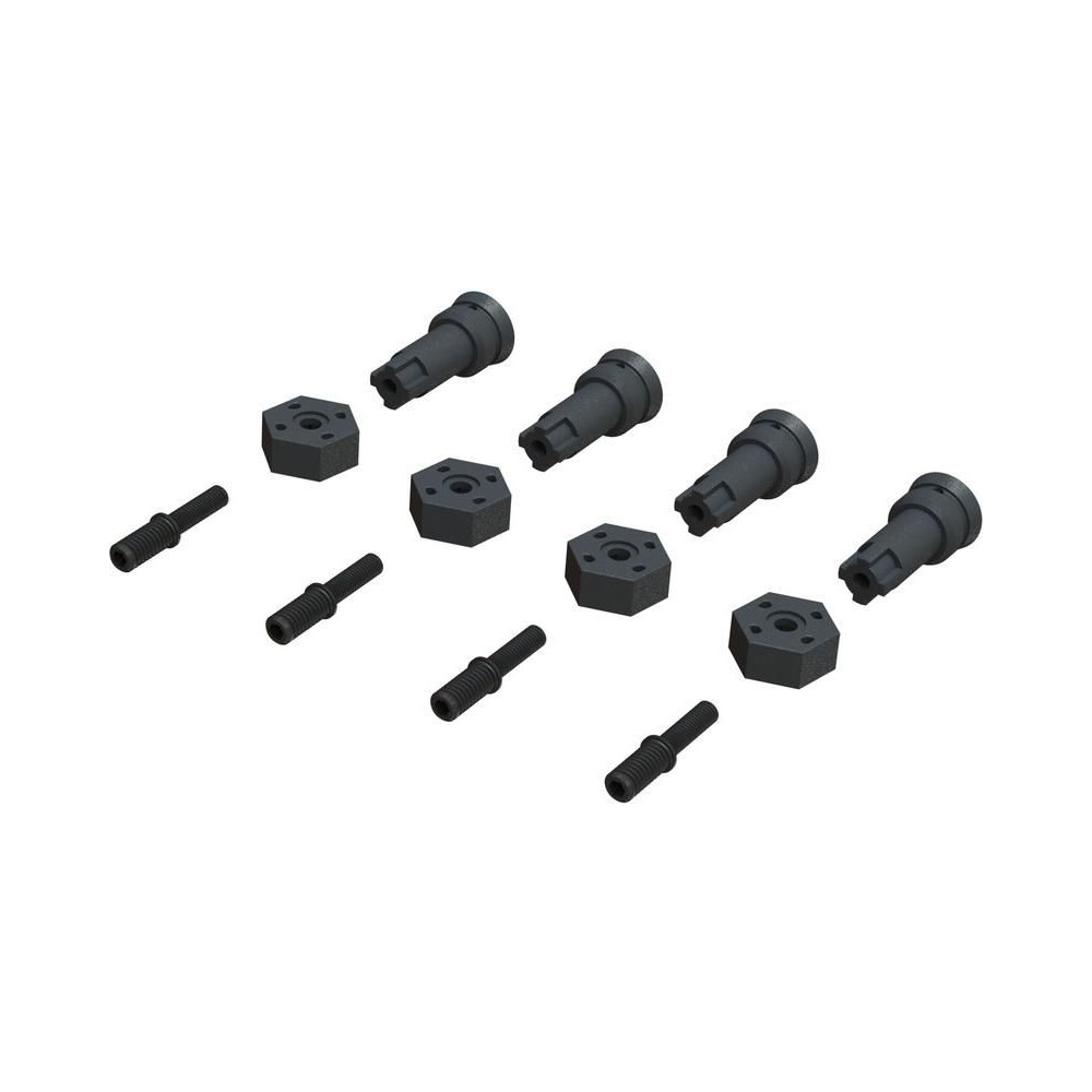Pótalkatrész RC autó modellekhez Arrma Granite Grom 1:18 4WD: keréktengelyek, kerékagyak.