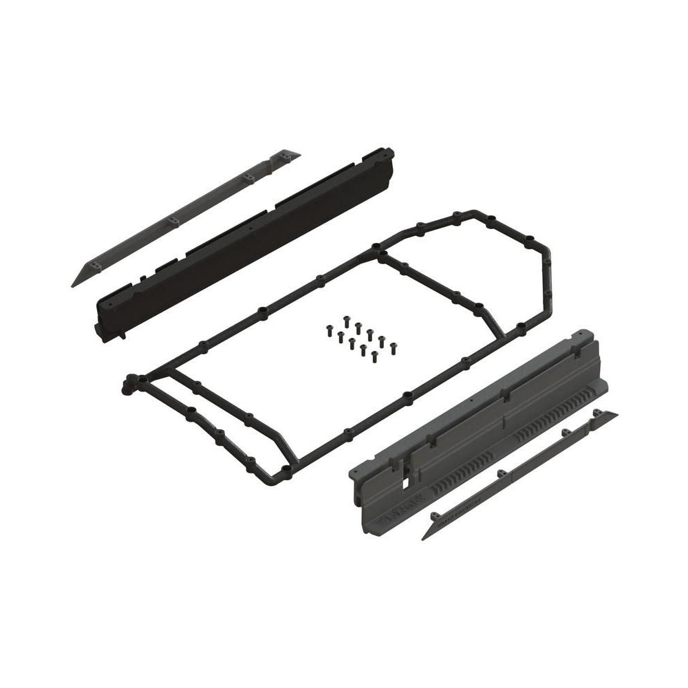 Pótalkatrész RC modellautókhoz Arrma 1/7 BIG ROCK 6S 4X4 BLX Monster Truck RTR: oldalsó védősínek, tartókeret.