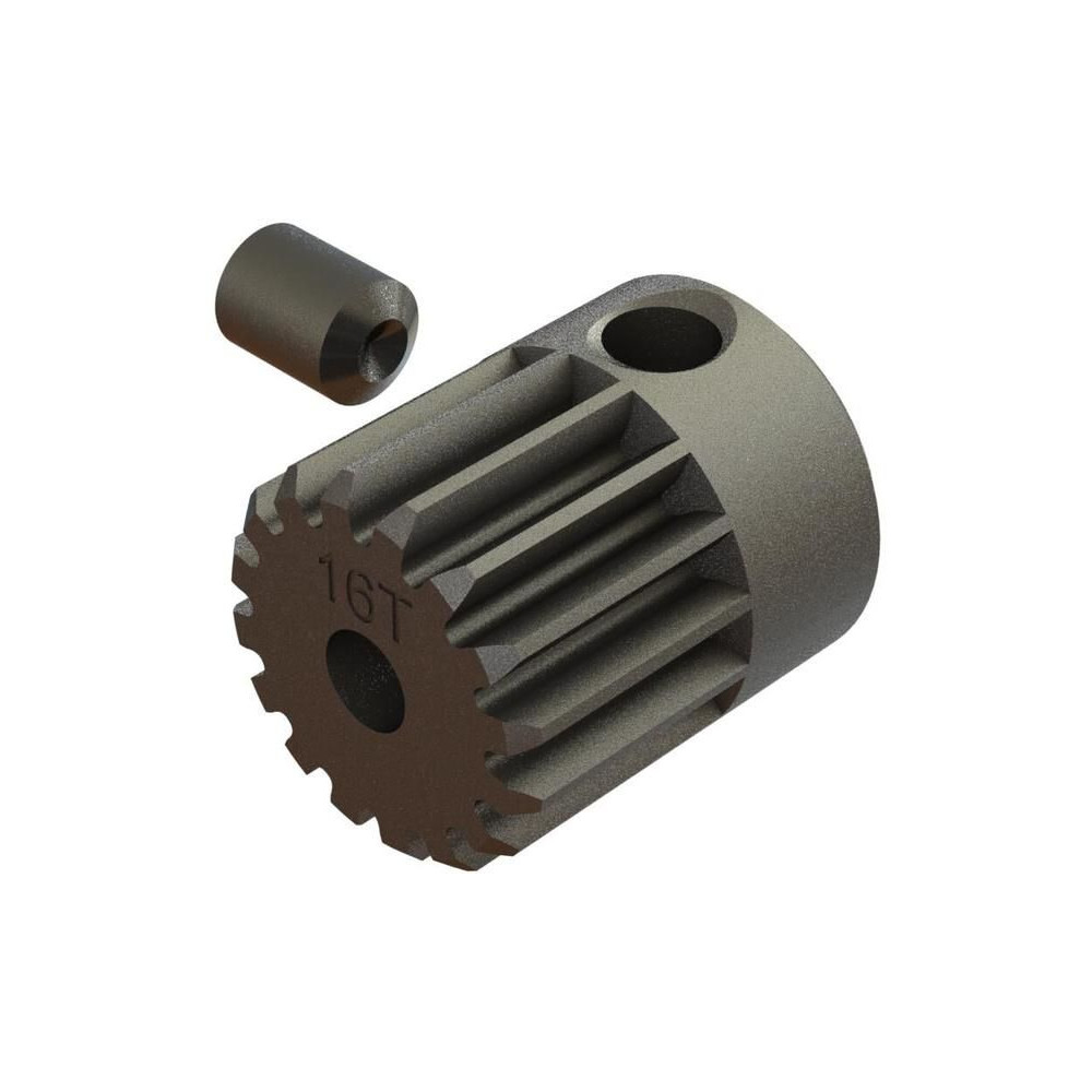 Arrma fogaskerék 2,3 mm-es tengelyhez 16 foggal és 50,8DP (0,5 mm) fogazott modullal RC autó modellekhez. Edzett acélból készült. CNC megmunkálással. Állítócsavar M3 x 4 mm.