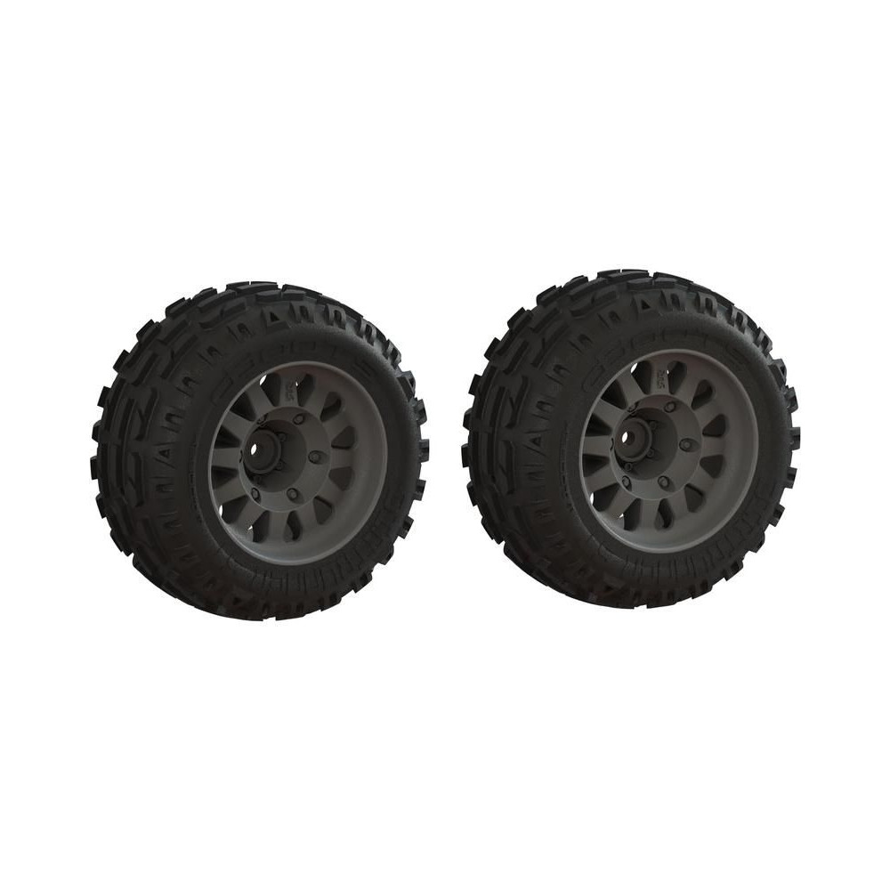 Pótalkatrész Arrma Mega 550 RC autó modellekhez: kerék abroncsokkal dBoots Dirtrunner ST (2). Méret ⌀115x52 mm. A hordozó 14 mm-es hatszögletű. 2,8" dBoots Dirtrunner ST gumiabroncsok.