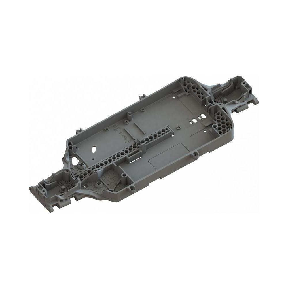 Alkatrész Arrma 1:10 RC autómodellekhez: LWB kompozit alváz. Merev kompozit alváz hosszú tengelytávú konfigurációban.