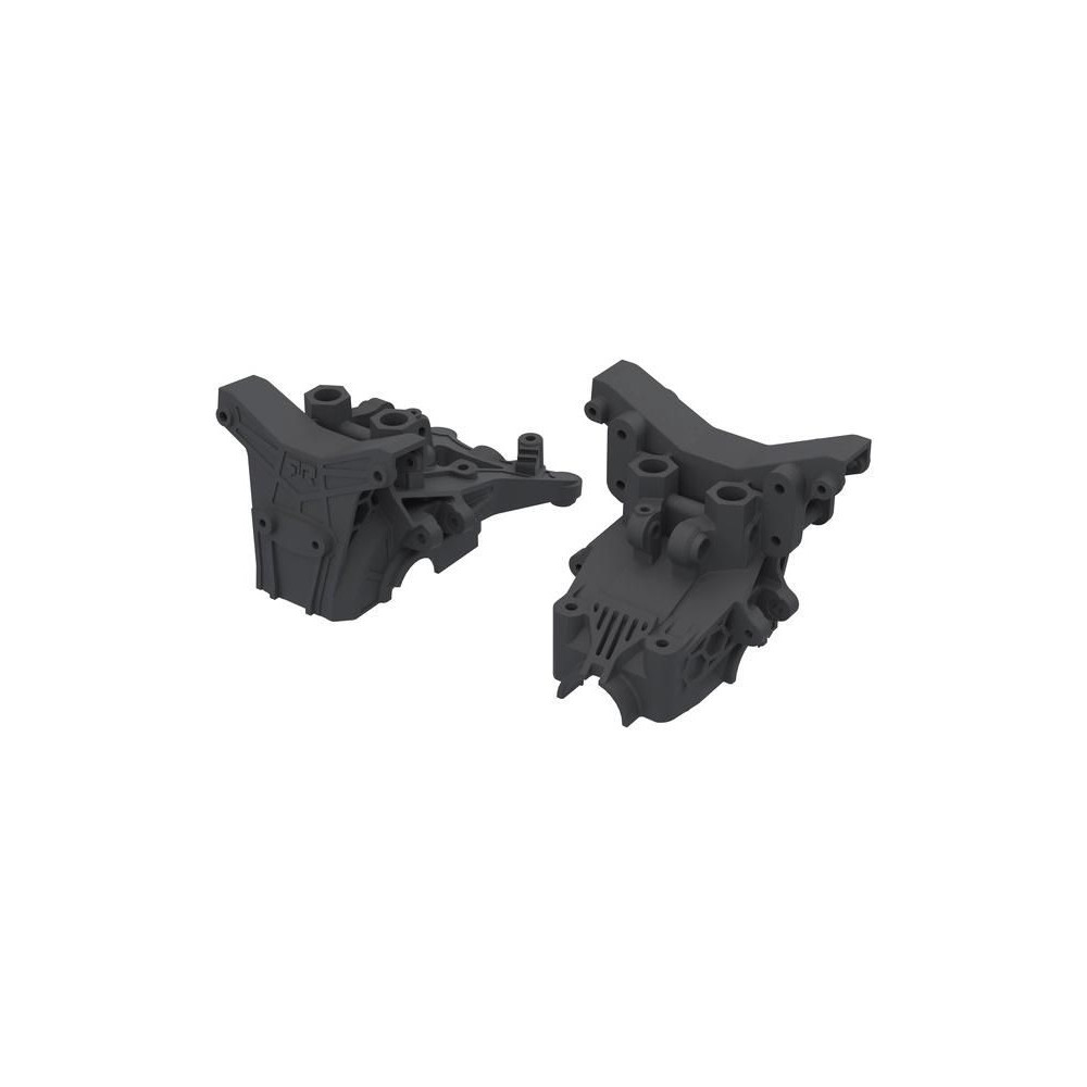 Arrma 1:10 RC autómodellek alkatrésze: kipufogótorony, elöl és hátul, beleértve a felső differenciálmű dobozt is.