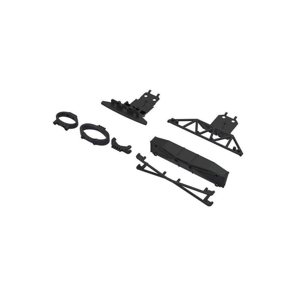 Alkatrész az Arrma 1:10 Senton 223S BLX RC modellautóhoz: alsó csúszótalp és lökhárítók.