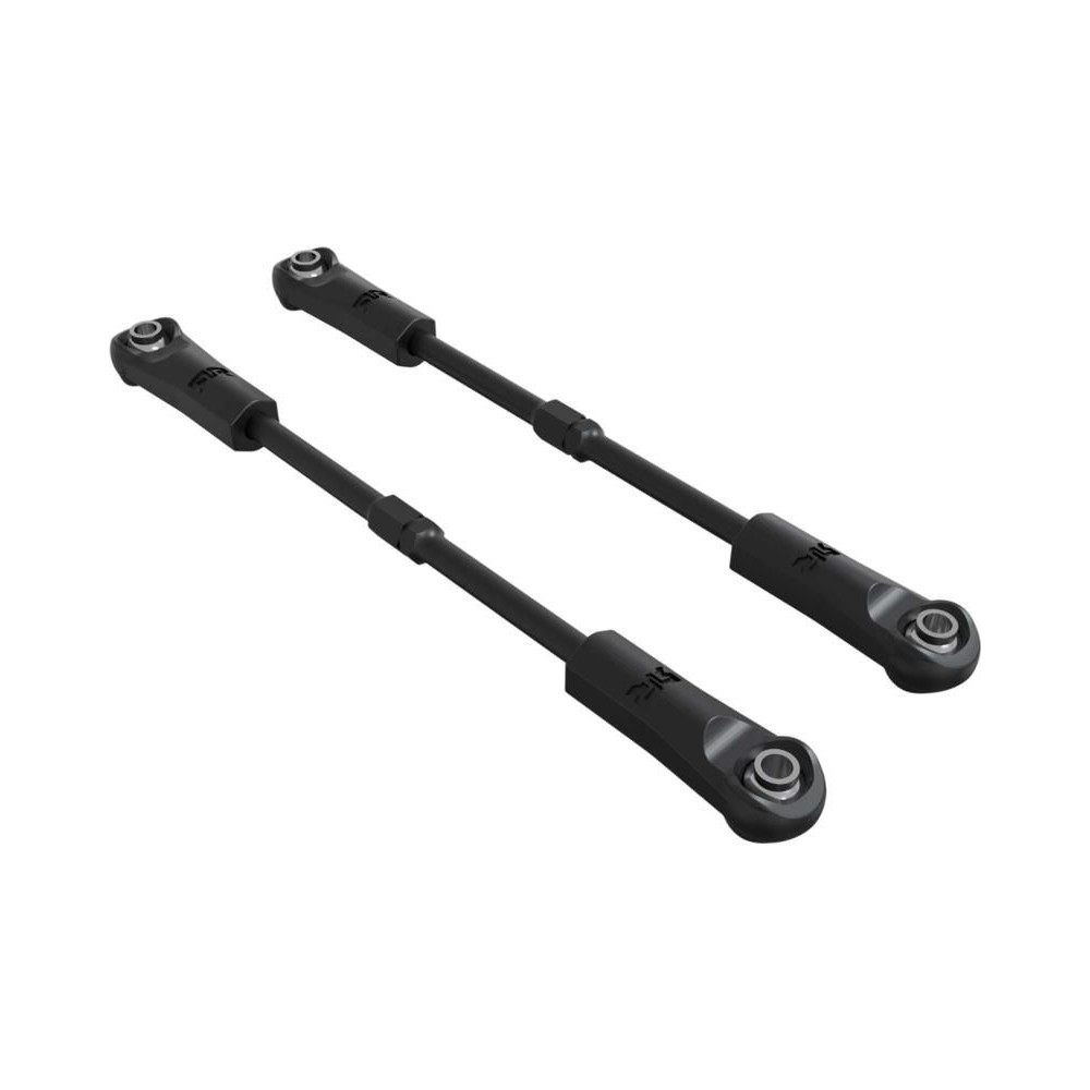 Arrma acél feszítőcsavar M3x48mm (2 db). Könnyű beállítás 4 mm-es kulccsal. Arrma logó. Tartalmazza a csapos végeket.