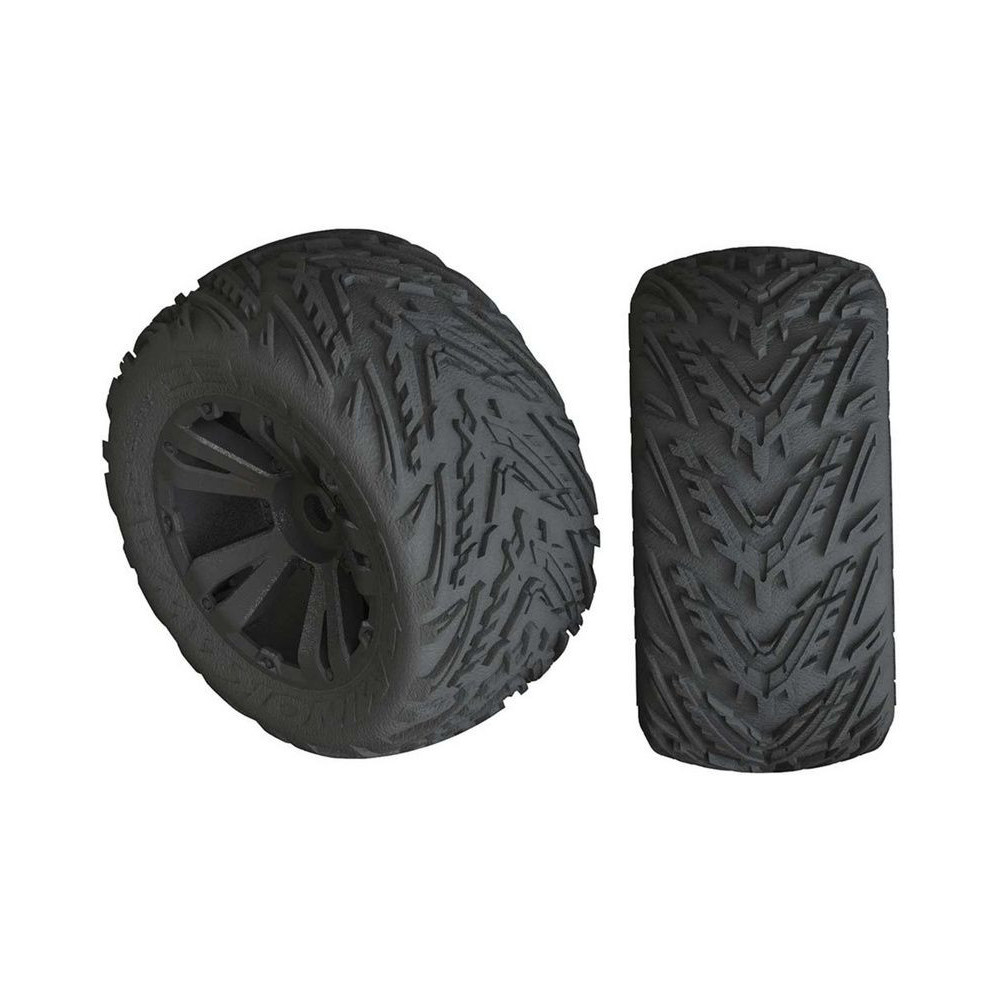 Pótalkatrész RC modellautóhoz Arrma Kratn/Outcast 4S BLX: kerék Minokwa 4S fekete gumiabroncsokkal (2 db).