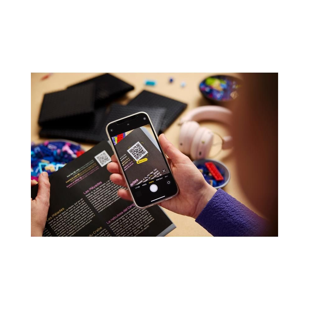 - Hallgass és tanulj - Az építők beolvashatják az építőfüzetükben található QR-kódot, hogy többet tudjanak meg a Tejútrendszerről a kifejezetten ehhez a készlethez készült hanganyagból