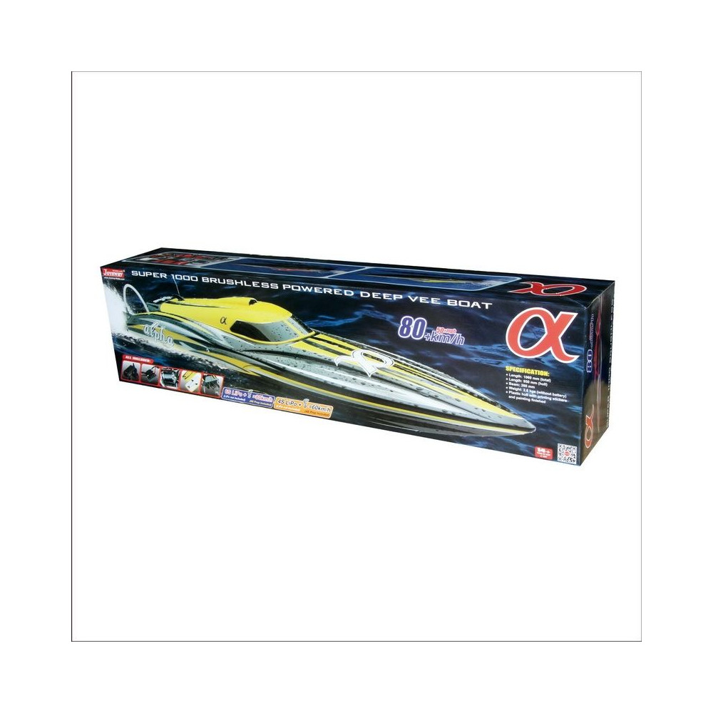 Gyorshajó modell műanyag hajótesttel 1060 mm hosszú. Beépített kefe nélküli motor 4-6S LiPo meghajtáshoz 90A vezérlővel, vízhűtéssel. Maximális sebesség akár 80 km/h. Modell RC készlet, meghajtó akkumulátor és töltő nélkül.