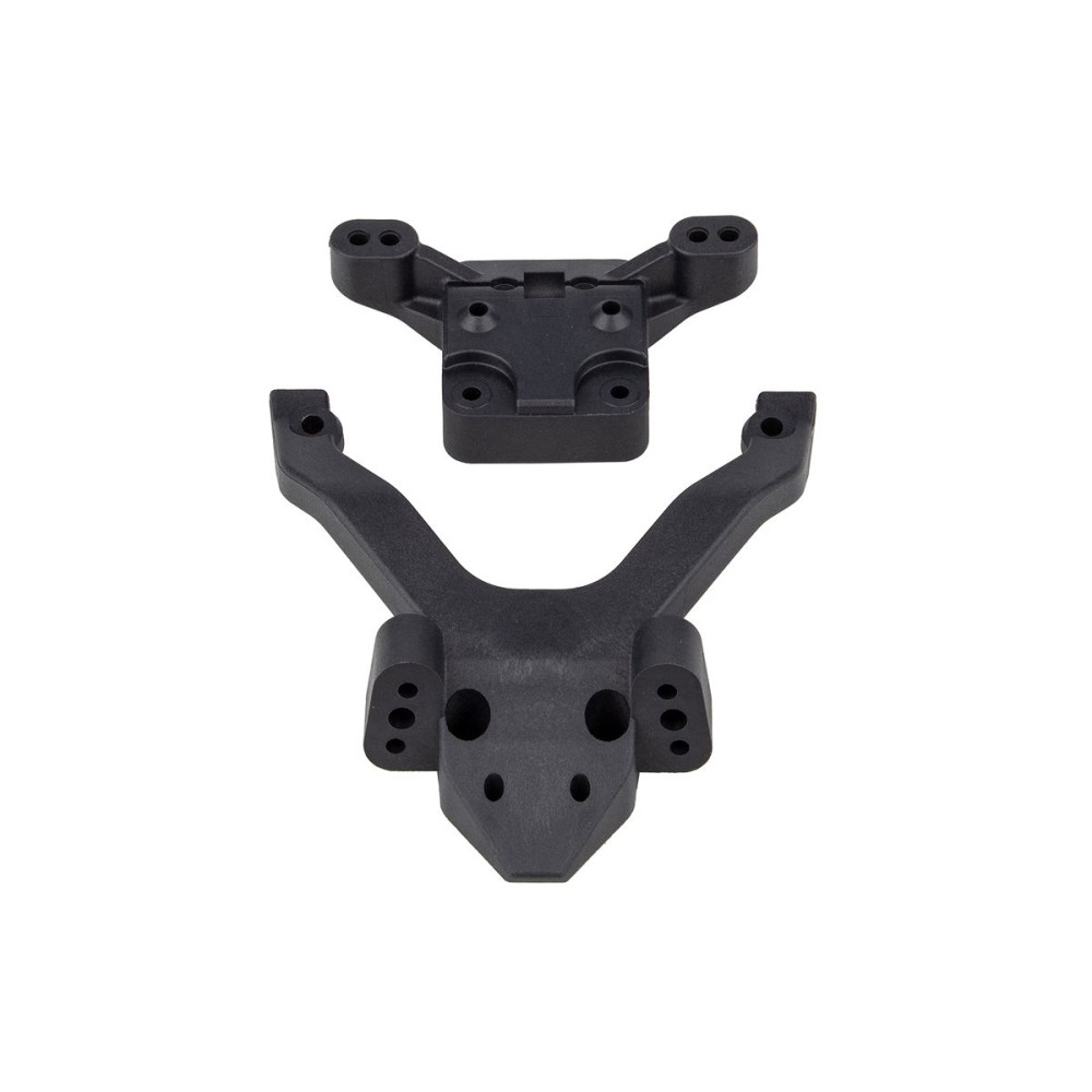 RC10B6.4 FT első műanyag alkatrész, beleértve a lengőkürt tartót, Carbon