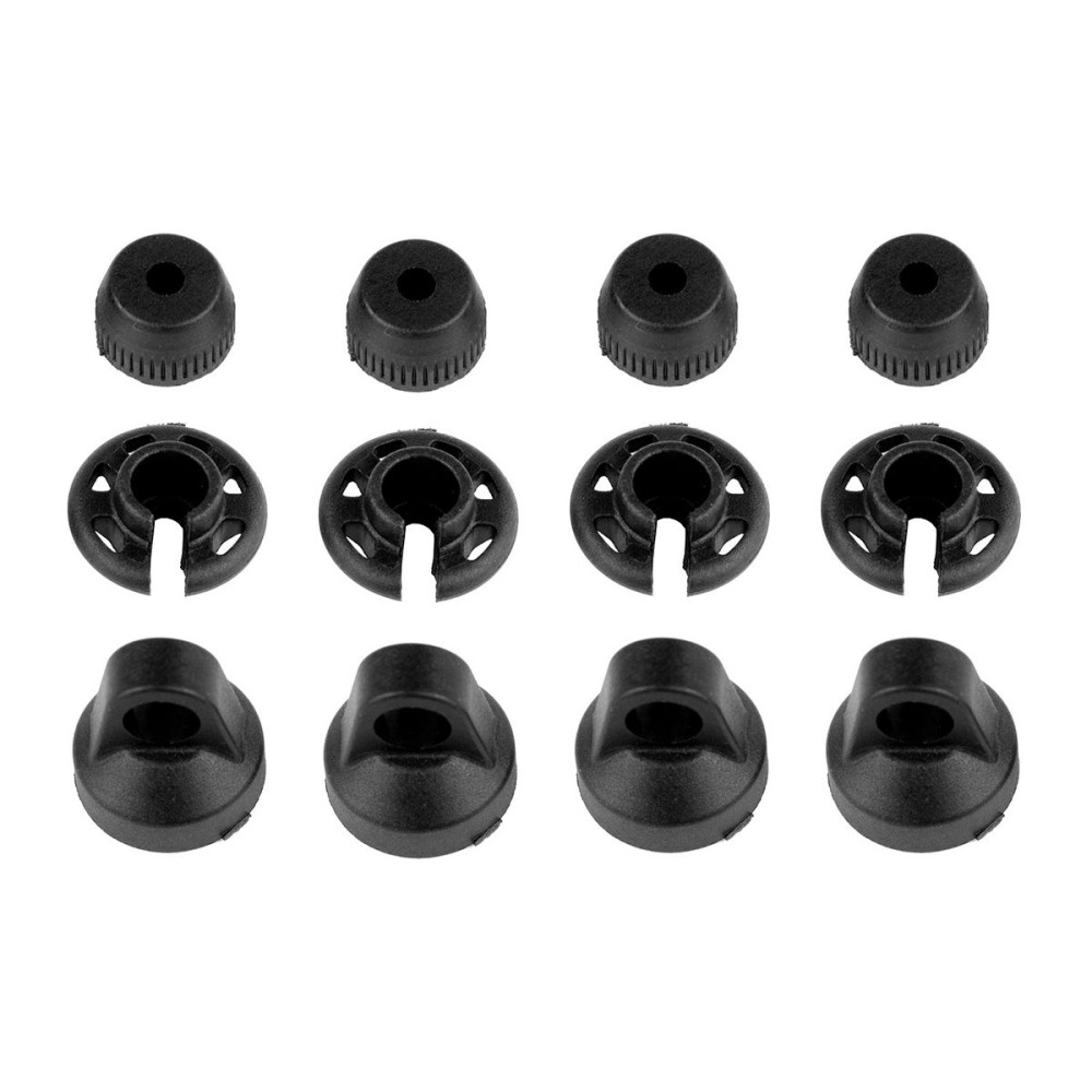 Műanyag alkatrészek olajcsillapítókhoz, kupakok, alátétek, 4+4+4 db.