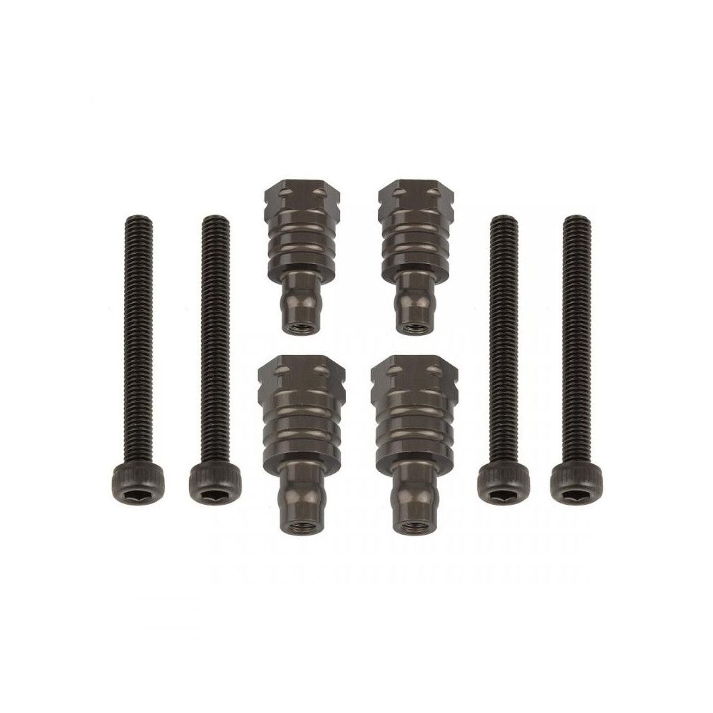 Az új, keményen eloxált alumínium lengéscsillapítótartók két különböző készletben készülnek. Az egyik készlet standard 14 mm-es és 17 mm-es hosszúságú (a bázis és a forgáspont közötti távolság), míg a másik egy speciális, rövidebb készlet 12,5 mm-es és 16 mm-es eltolással, amelyet az FT karbon agancsokhoz terveztek, amelyeknek nincsenek süllyesztett zsebeik, mint a készletben lévő alumínium tornyoknak.