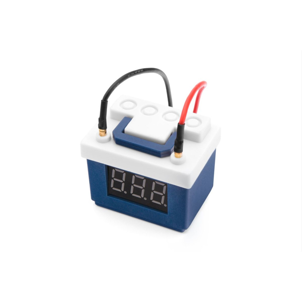 LED-es digitális feszültségjelző, amely az 1:10-es RC autókhoz készült autóakkumulátorban van elrejtve. A feszültségmérés mellett fény (a kijelző villogásával) és hangjelzéssel jelzi az alacsony feszültséget, 6-15 V-os (0,5 V-os lépésekben) állítható küszöbértékkel.