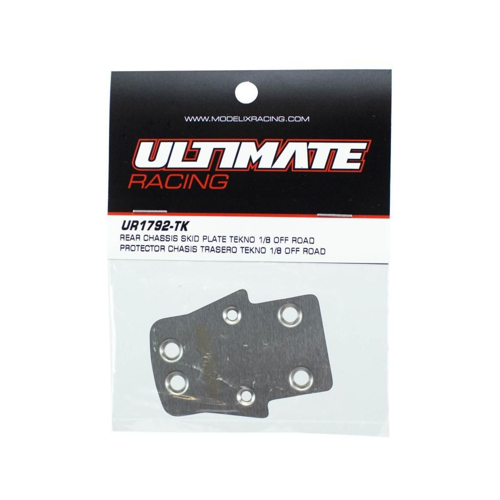 Ultimate Racing hátsó alvázvédő lemez a Tekno 1/8 Off Roadhoz. Az NB48 2.0, 2.1 és 2.2 platformokhoz tervezett csúszótalpas lemez fokozott alvázvédelmet nyújt a kopással szemben. 0,5 mm-es rozsdamentes acélból készül, és az egyik legegyszerűbb módja a járművének védelmének. A csomag egy ezüstszínű, lézergravírozással ellátott Ultimate csúszásgátló lemezt tartalmaz.