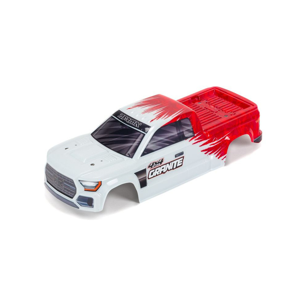 Pótalkatrész RC autó modellekhez 1:10 Arrma Granite 4x4 Mega: karosszéria készre festve, fehér. Tengelytáv 287mm.