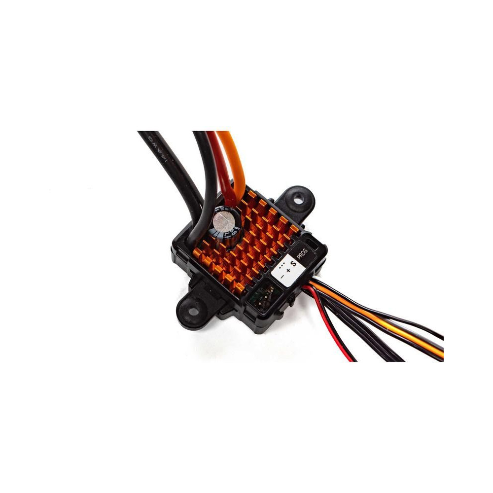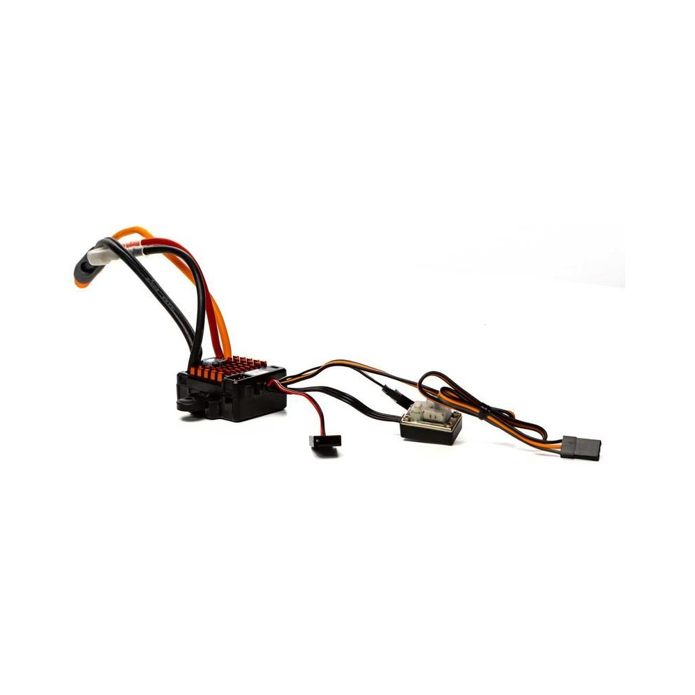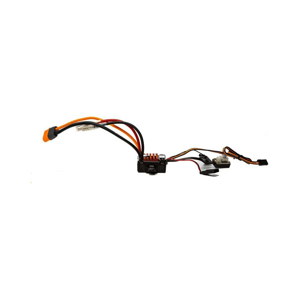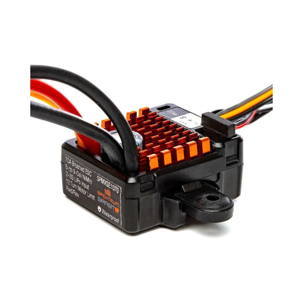 Spektrum Smart DC szabályzó Firm 70A WP 1:10-es RC autómodellekhez, 2-3 Li-Po/Li-Fe akkumulátorral; 5-9 Ni-MH/Ni-Cd akkumulátorral, kompatibilis 8,4V-12T vagy 12,6V-35T motorokkal. BEC 6V/7.4V - 4A, méretek 36mm x 30mm x 18.2mm, súly 50g. csatlakozó IC3, motor 4mm csövek. Kapcsoló programozási gombbal.
