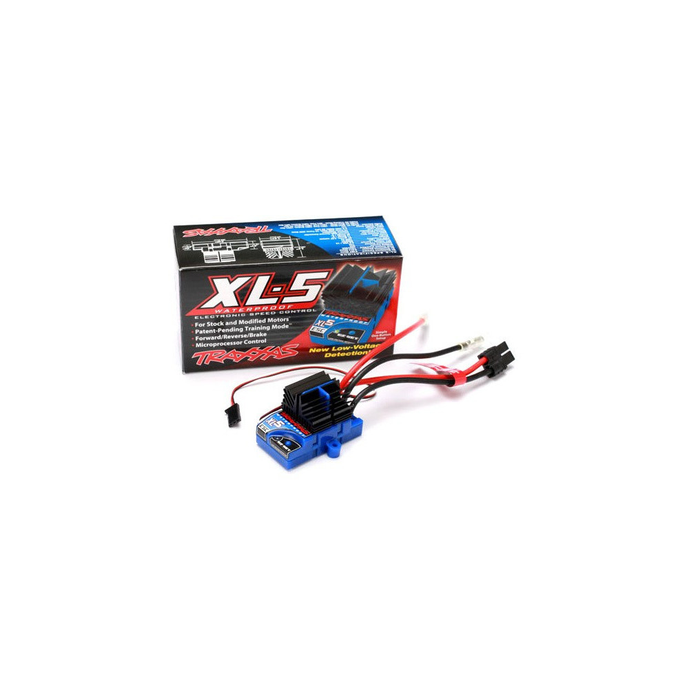 Egyenáramú szabályzó XL-5 Low Voltage Detection LVD az 1:10-es méretarányú Traxxas autókhoz, mint pld. Bandit, Monster Jam, Stampede, Slash stb. Táplálható 4 - 8 cellás NiMH, vagy 2 cellás LiPo-al. Ez szabályzó helyettesíti az eredeti XL-5 sorozatot (azaz LVD nélküll), amely nem támogatta a LiPo akkumulátorokat).