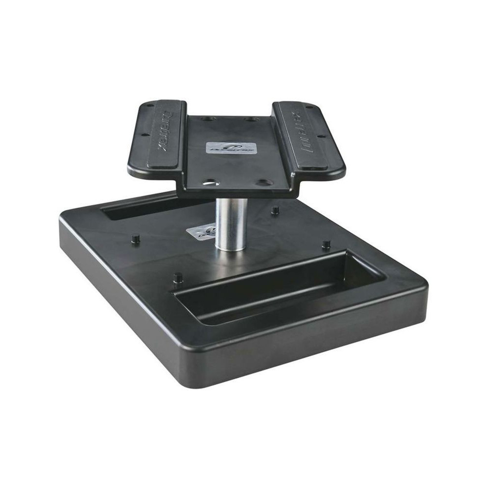Duratrax autóállvány Pit Tech Deluxe fekete autószervizhez 1:8. Az állványlemezeken lévő gumipárnák tartják az alvázat a párnán, a masszív állvány könnyen szétszerelhető és gazdaságosan tárolható. A felső lemez forgatható, hasznos segítség a modellautók szervizelésénél.