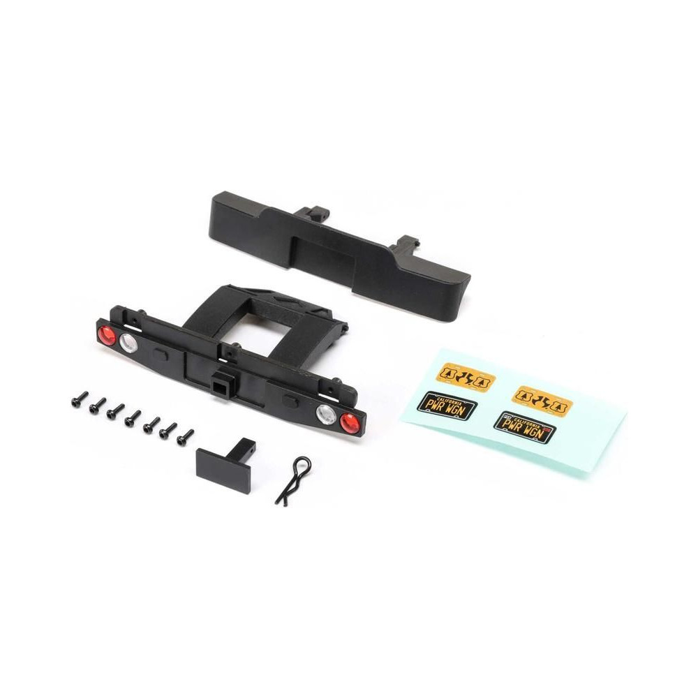 Pótalkatrész RC autó modellekhez Axial SCX24 Bronco, Dodge Power Wagon: első és hátsó lökhárító matricákkal és rögzítő tartozékokkal.
