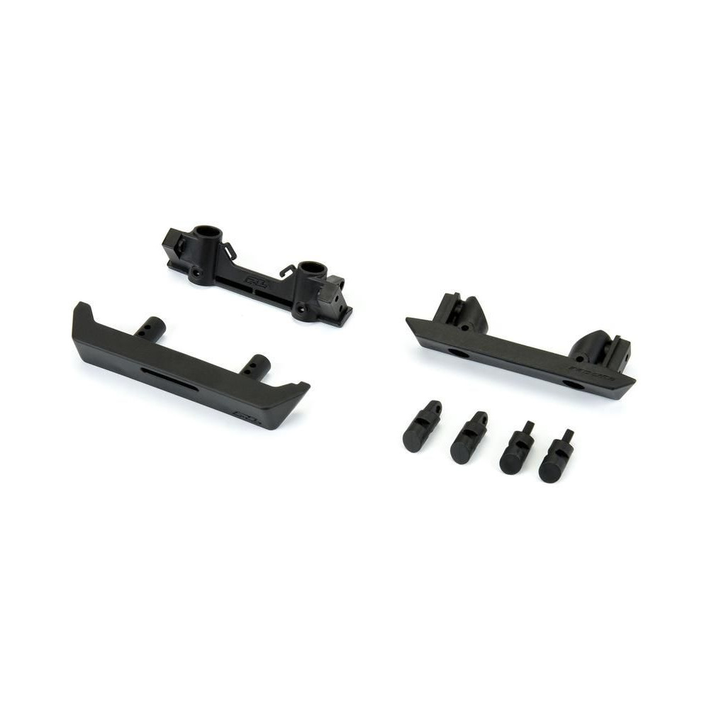 Tuning Axial RC autómodellekhez SCX10 III alvázon: Pro-Line lökhárító 1:10 elöl és hátul, High-Performance Crawler. Ezt a lökhárító szettet az alapoktól kezdve a legjobb hasmagasság és megközelítési szög elérése érdekében terveztük. Az illesztés magasabb lökhárító pozíciót és hátrafelé eltolást biztosít.