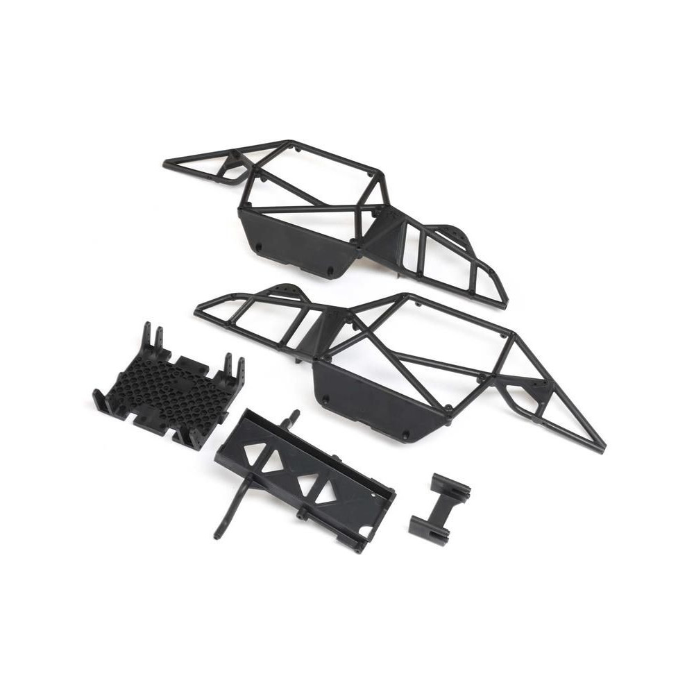 Alkatrész az Axial Gilamon AXP8 RC autómodellhez: oldalsó ketrecek, csúszótalp, akkumulátorfedél.