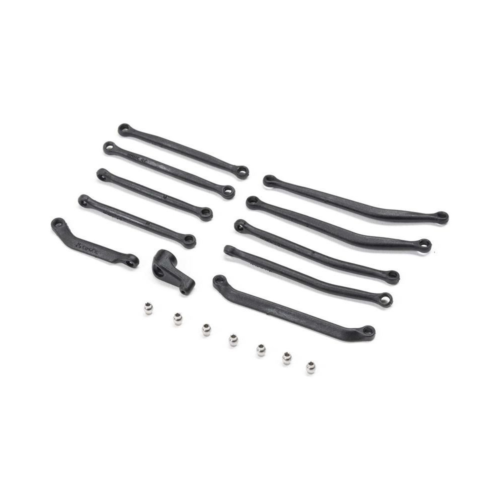 Axial SCX30 RC autómodellek alkatrészei: kormányrúd, szervokar.