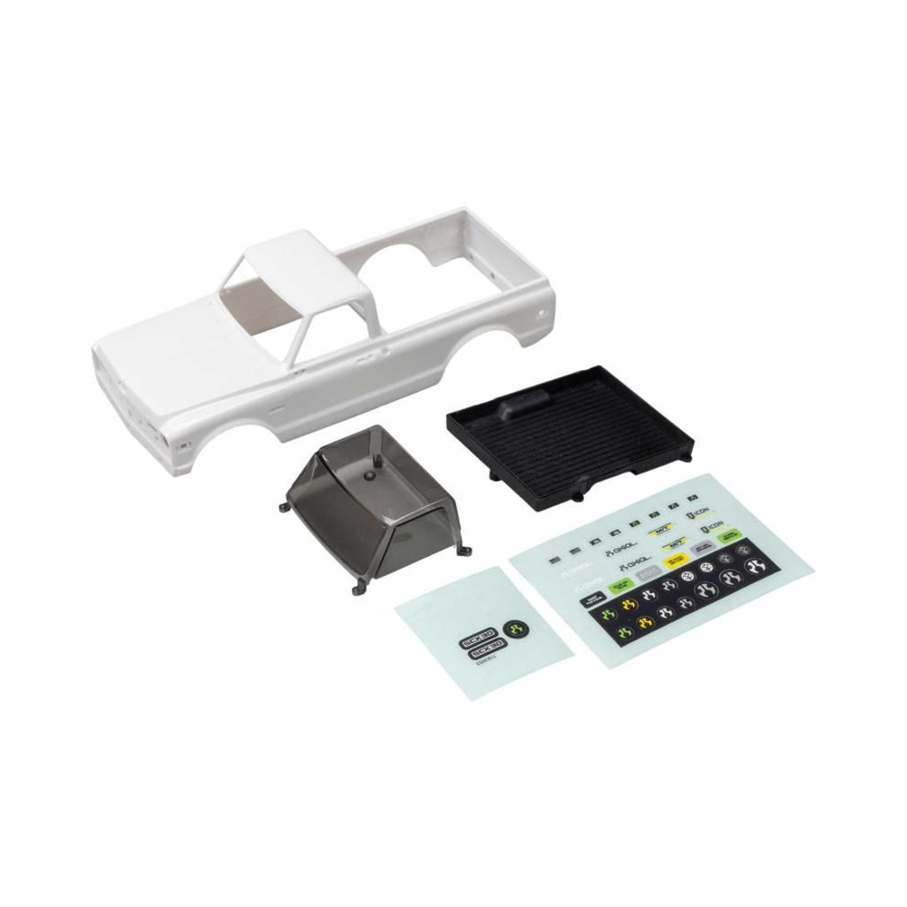 Axial SCX30 K10 RC modellautó alkatrész: karosszéria. Fehér ABS műanyagból készült. Átlátszó ablakokkal, karosszéria-kitöltő anyaggal és egy matricalappal együtt.