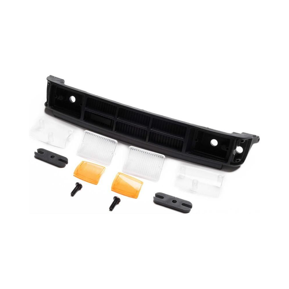 Axial SCX10 III (Toyota SR5) RC autómodellek alkatrészei: hűtőrács, fényszórók.