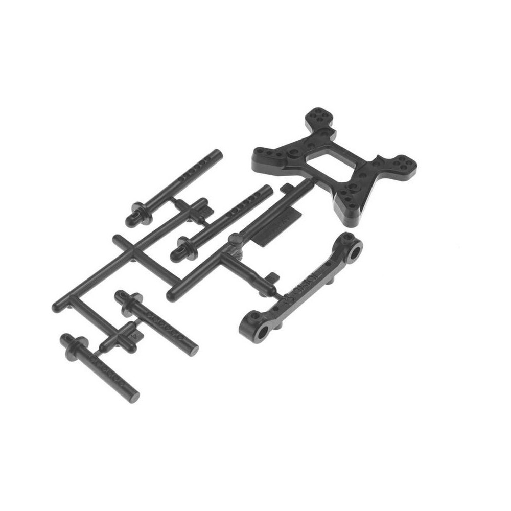 Axial Yeti autók RC modelljeinek alkatrészei: lengéscsillapító torony, karosszéria tartó.