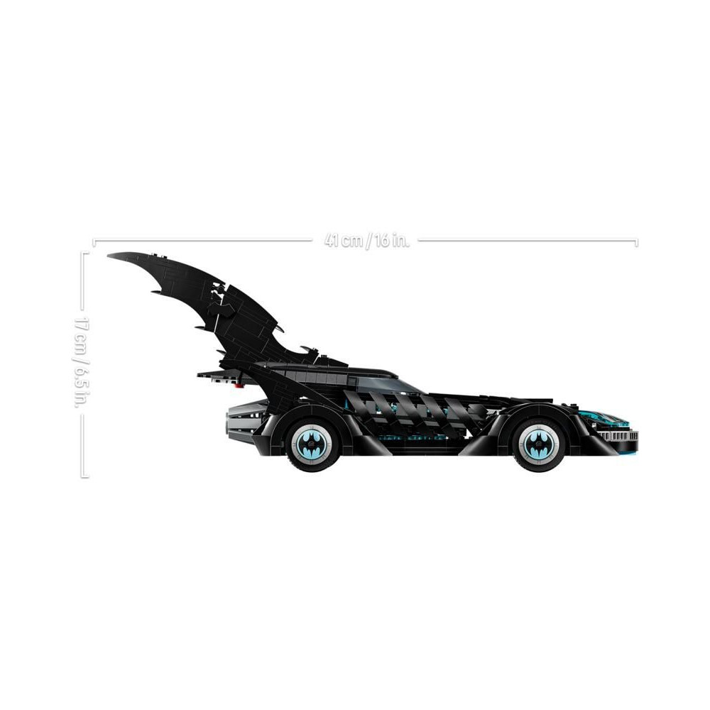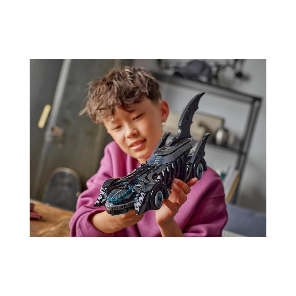 Az ikonikus Batman Forever autó hiteles másolata öntött szélvédővel, mozgó kerekekkel, dekorációkkal és egy nyitható pilótafülkével rendelkezik, amely egy kidolgozott belső teret tár fel. A jármű tartalmaz egy Batman minifigurát is saját különleges állvánnyal. Még több digitális szórakozásért az építők 3D-ben nagyíthatják és forgathatják a modelleket, és nyomon követhetik a haladást a szórakoztató és intuitív LEGO Builder alkalmazás segítségével. A készlet 909 alkatrészt tartalmaz.