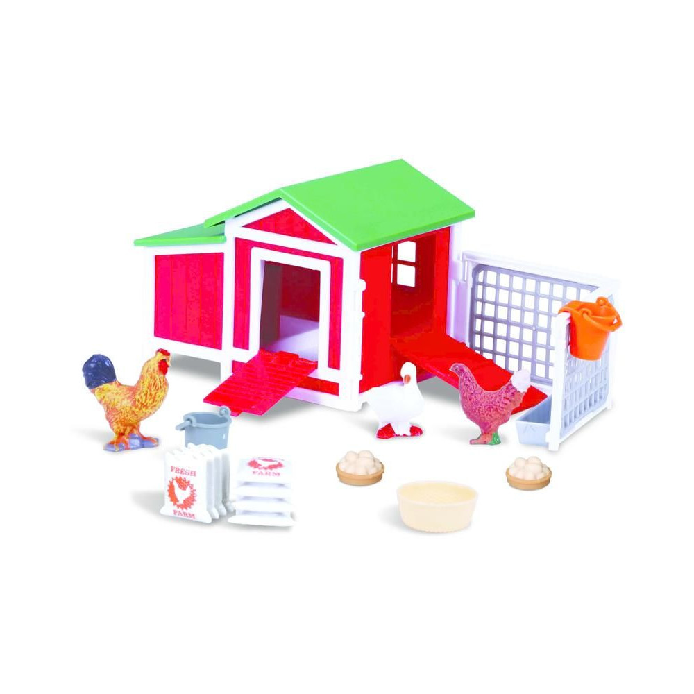 Bburago készlet 18-31681 Csirkefarm traktorral, a készlet tartalma - traktor, csirkefarm, apró kiegészítők.
