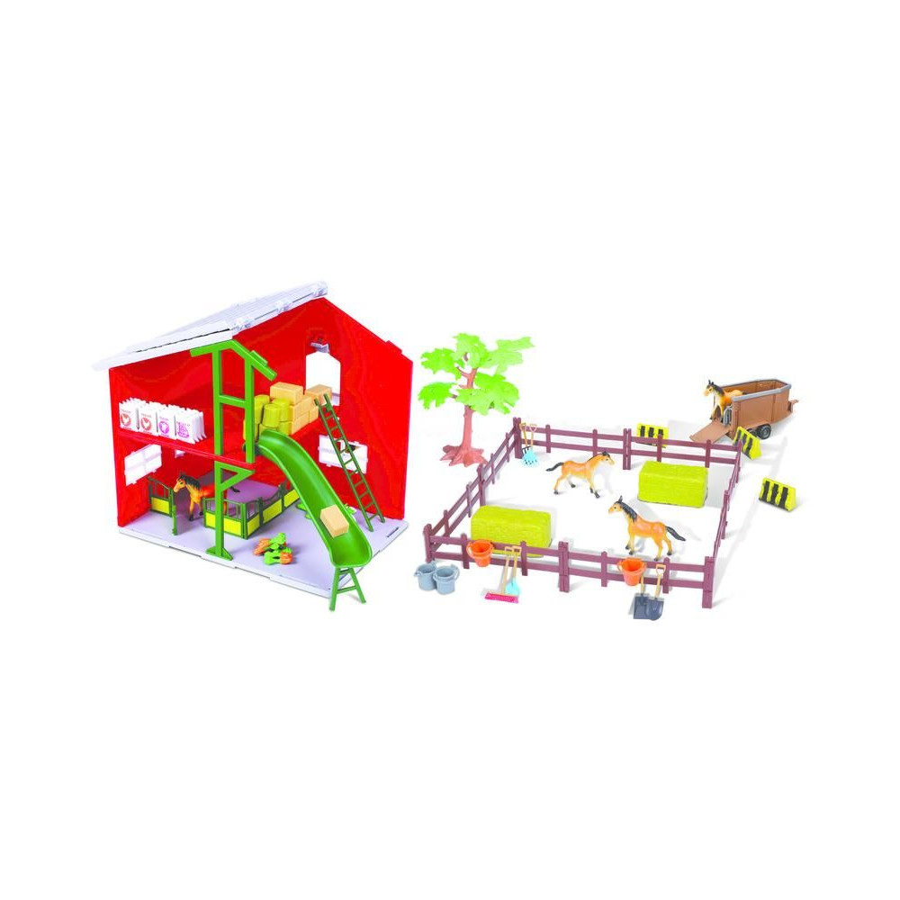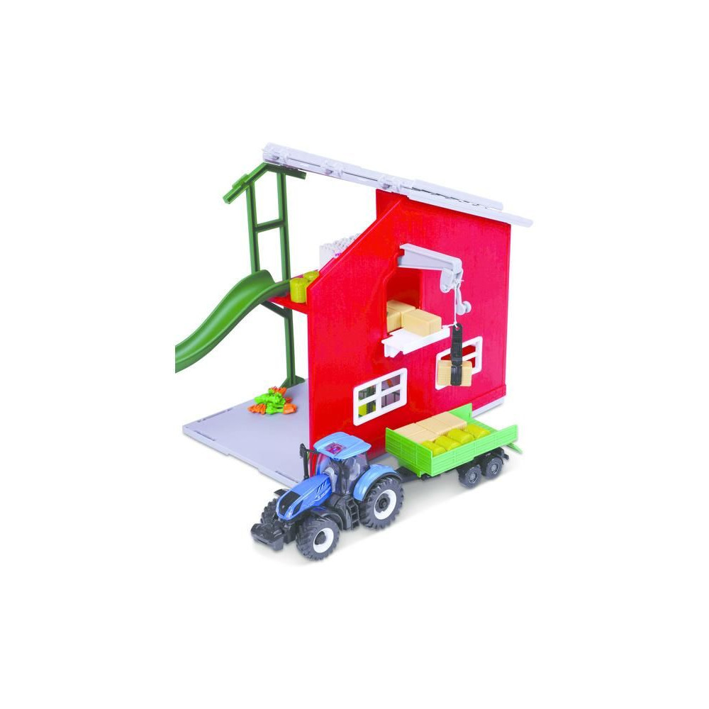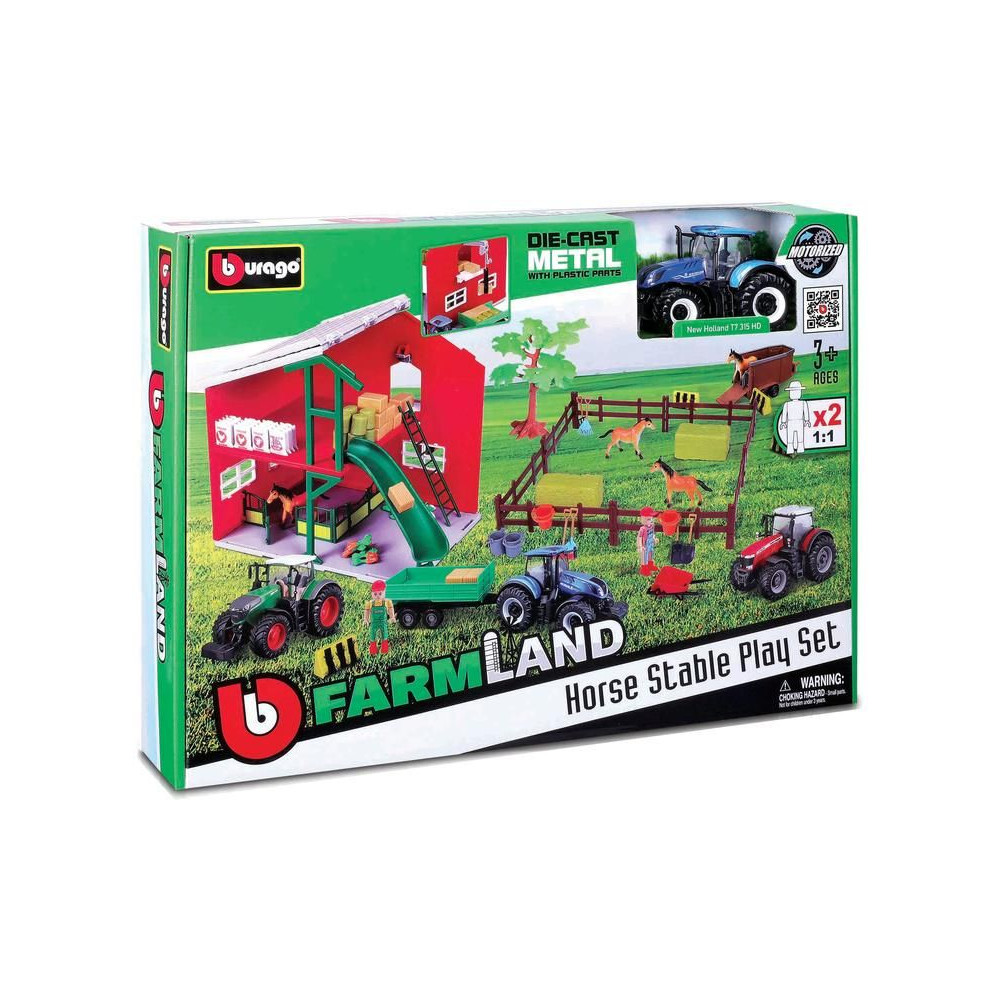 Bburago szett 18-31682 lóistálló traktorral, a szett tartalma - traktor, lóistálló, apró kiegészítők.