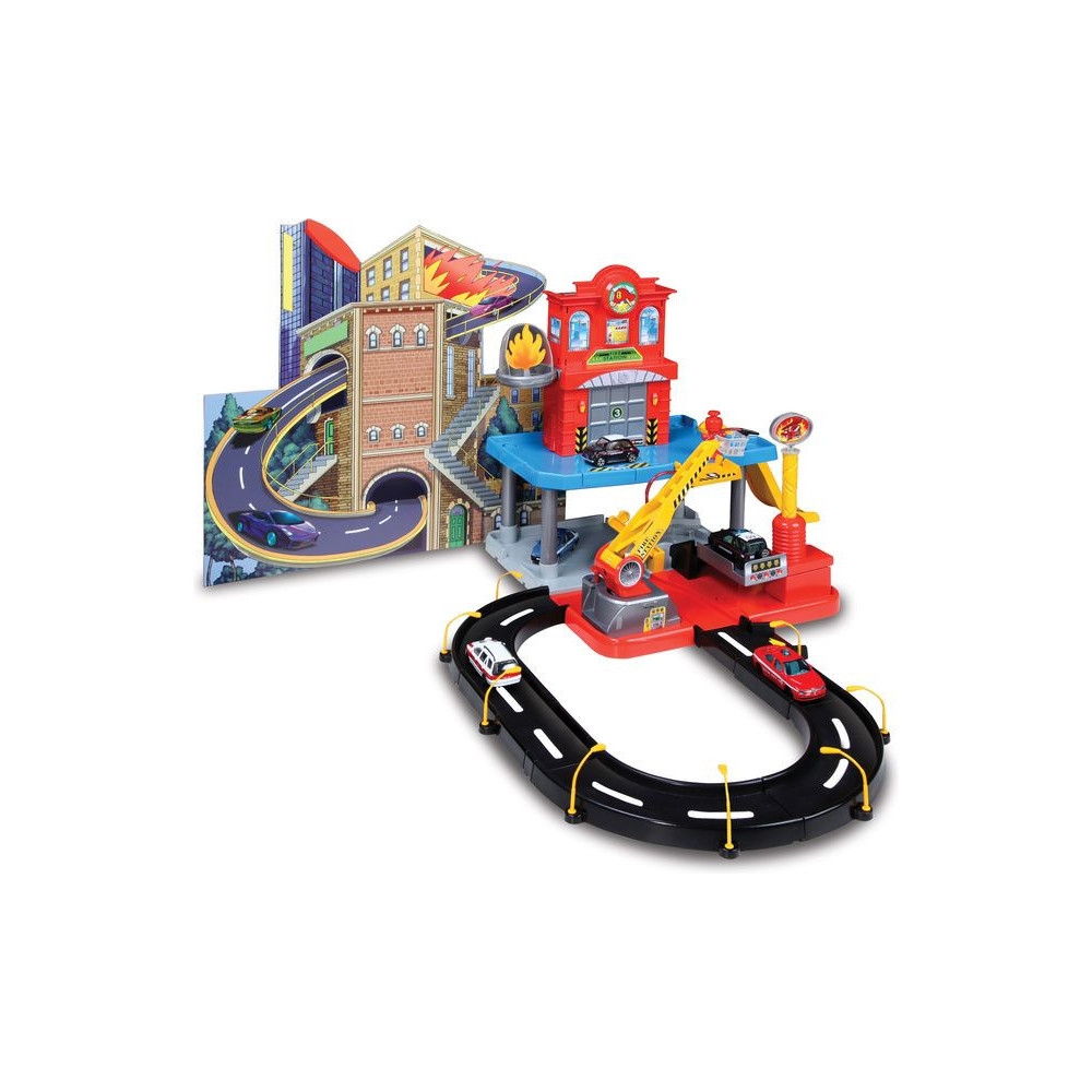 A vonzó színű műanyag alkatrészekből készült garázs könnyen össze- és szétszerelhető. Ezután már csak a saját fantáziádat kell bevetned, és kezdődhet a végtelen szórakozás és kaland. Töltsd meg a tűzoltóautót, nyisd ki a garázst, és futtasd le a tűzoltóautót a felvonón vagy a lejtős úton.