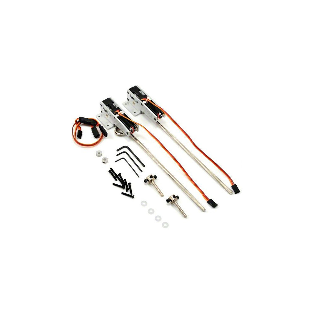 Behúzható alváz elektromos behúzással és kihúzással és egyszerű összeszereléssel. Tartalmazza a kábelezést és a szerelési tartozékokat. Csavarozza be a szárnyba és csatlakoztassa a mellékelt Y-kábelhez. Futómű 10 mm átmérőjű lábakhoz. 3,8-6,8 kg repülési tömegű modellekhez.