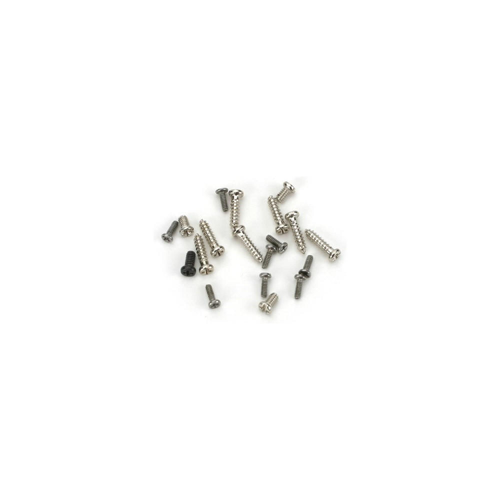 E-flite csavarok készlete. A csomag különböző hosszúságú, átmérőjű, süllyesztett és hengeres fejű csavarokat tartalmaz.